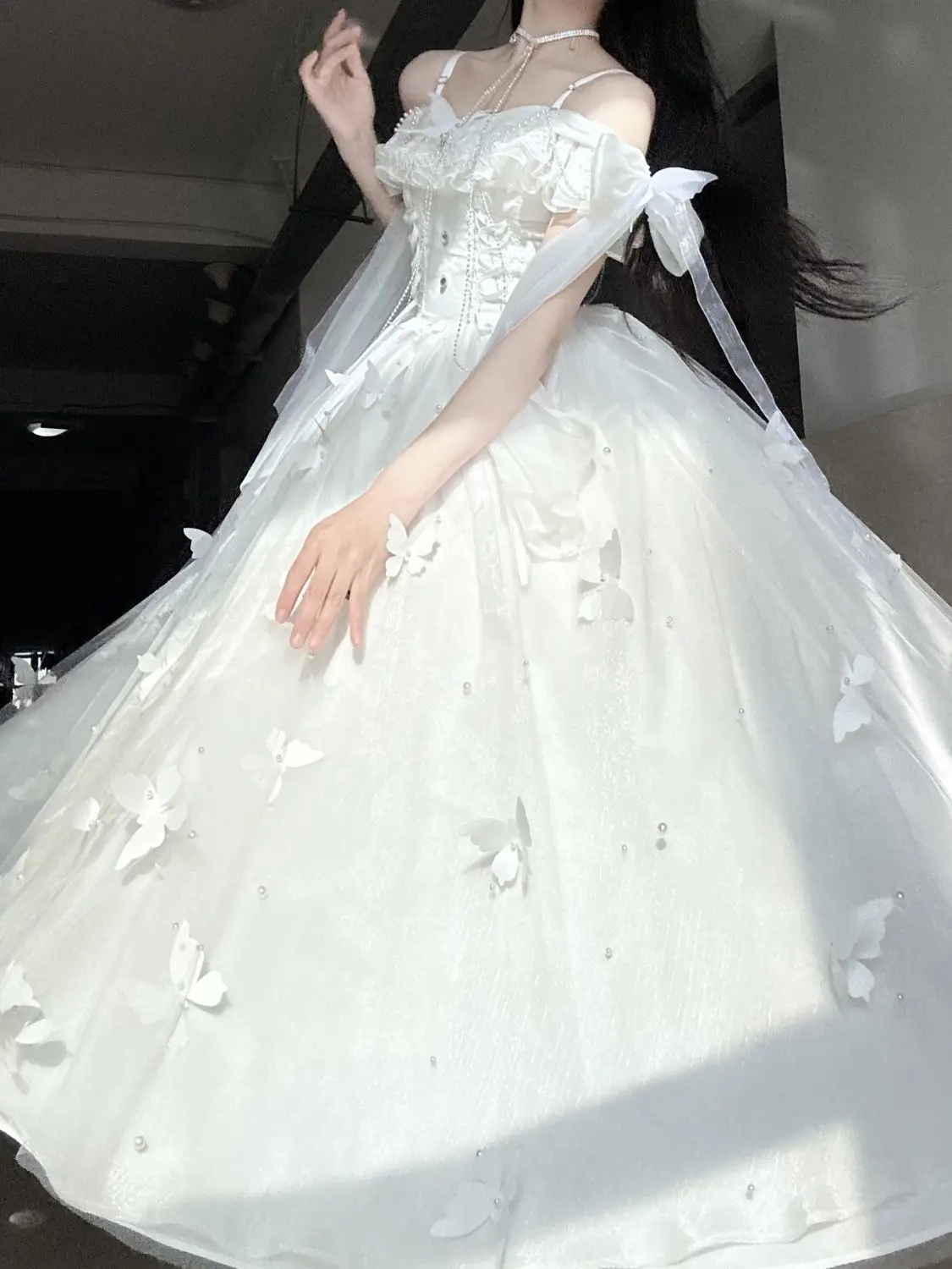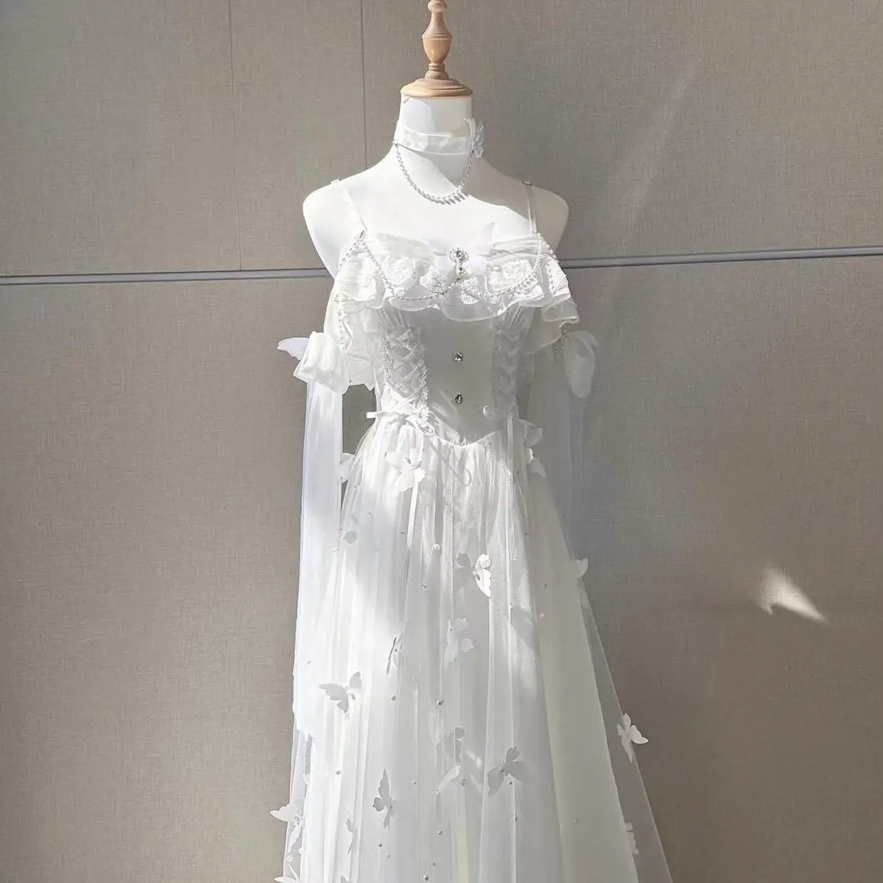 Летнее платье принцессы с колокольчиками на весну/лето, белое сказочное платье с лунным светом, лестницей и бабочками для косплея