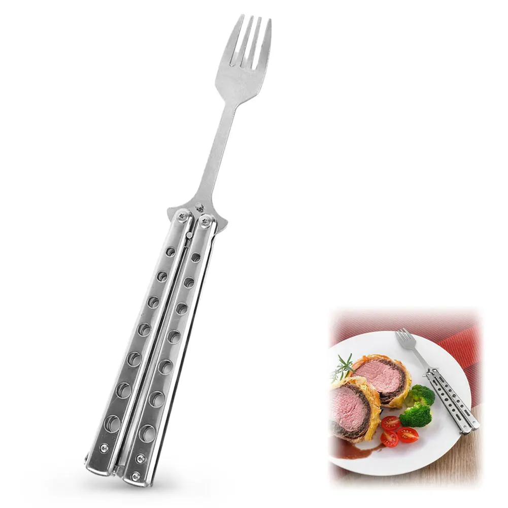 1 шт. Складная ложка-бабочка, вилка, балисонг, тренировочная ложка, вилка, нож-бабочка, тренировочная посуда для кемпинга на открытом воздухе