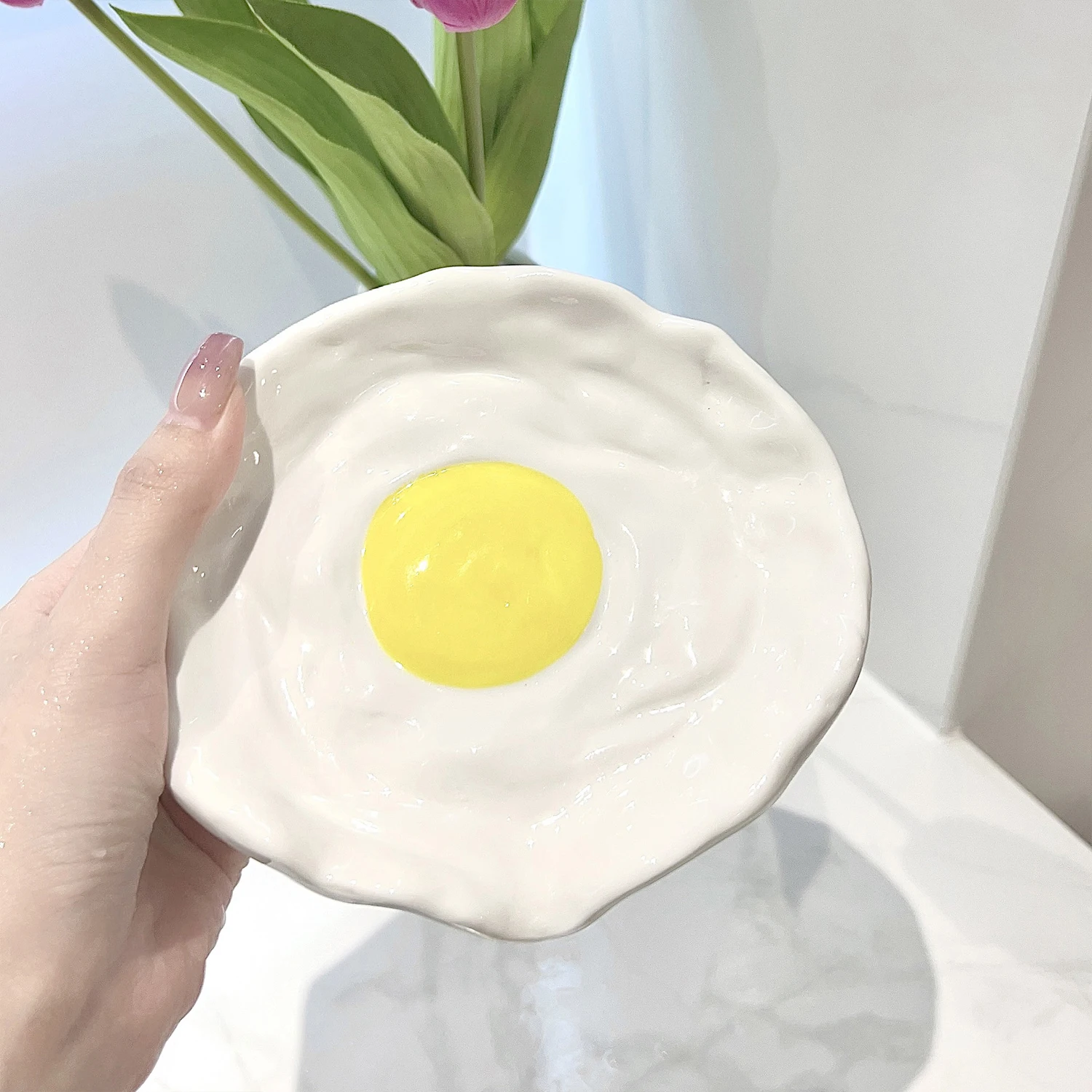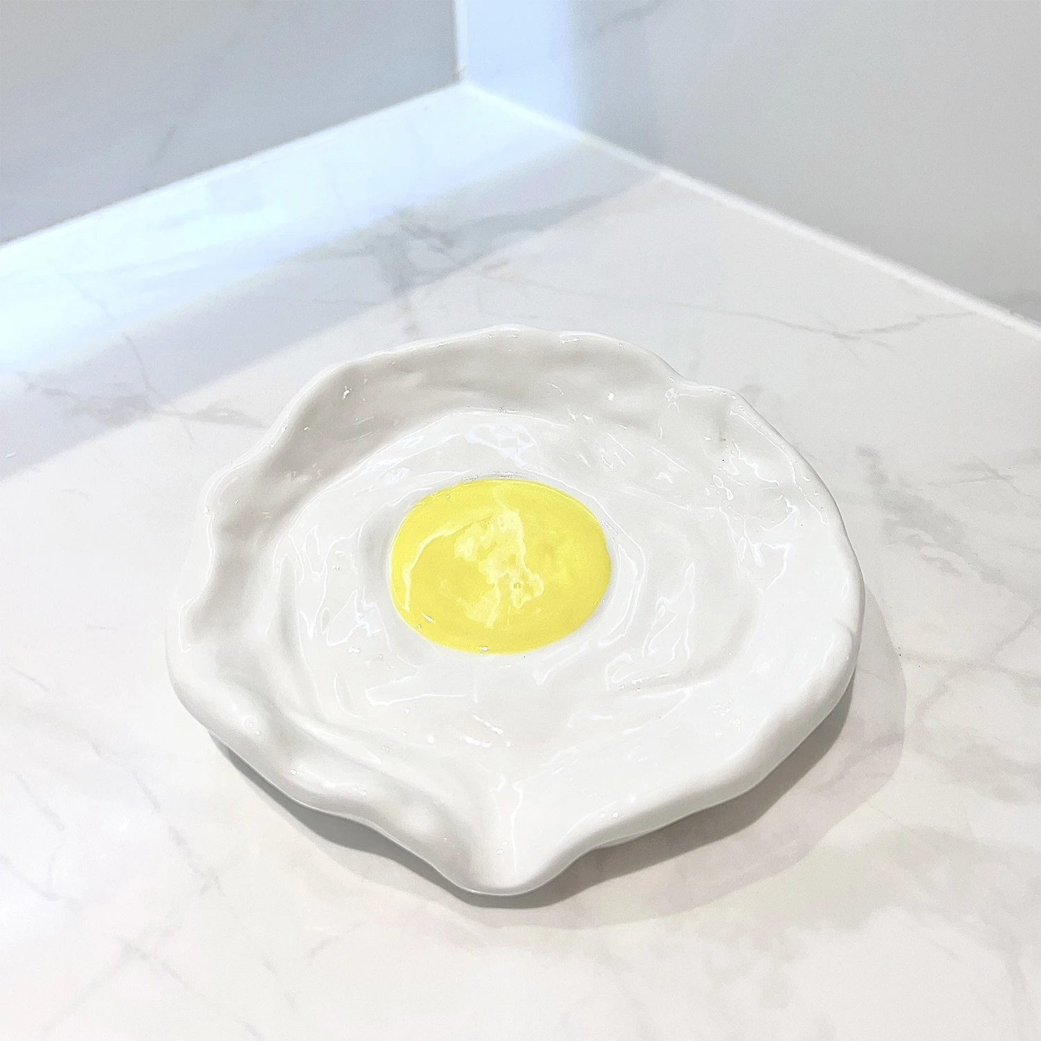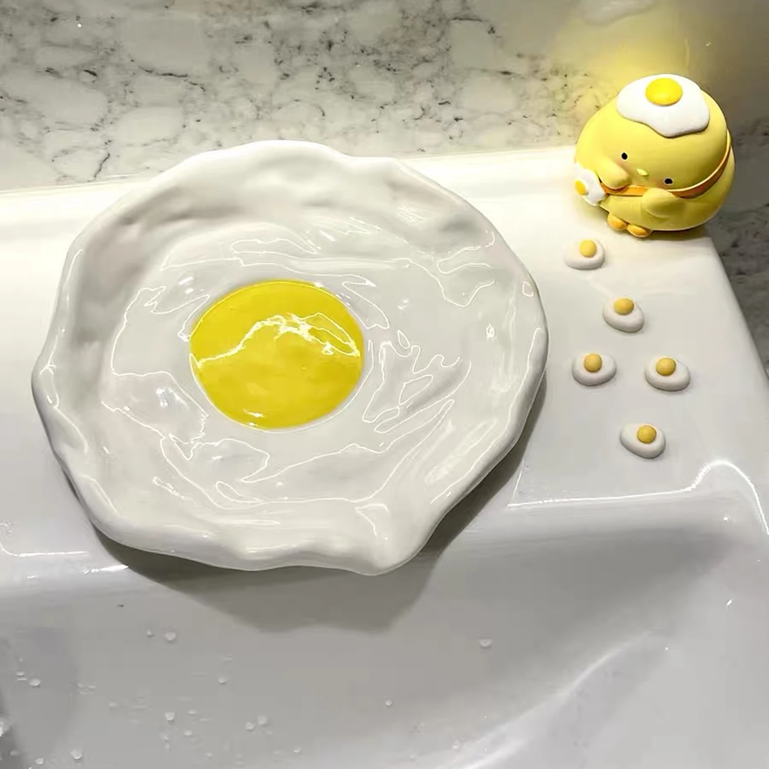 Керамический контейнер для мыла в виде жареного яйца, портативная самосушивающаяся мыльница для ванной комнаты, подставка для ложки для кухни, забавная мыльница