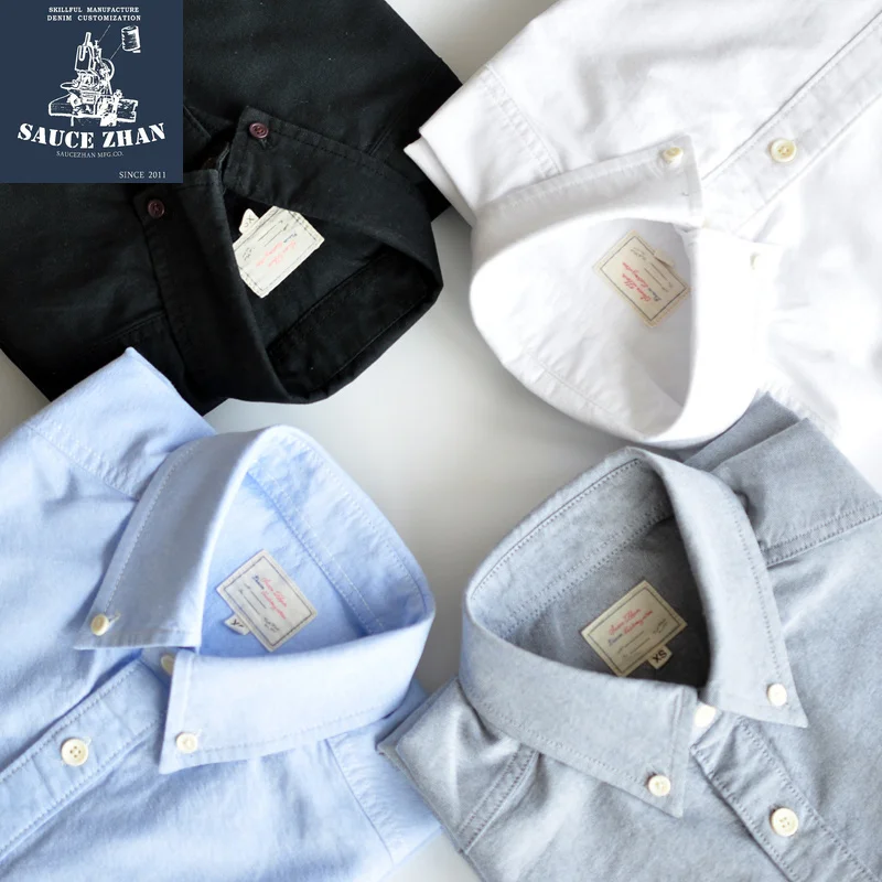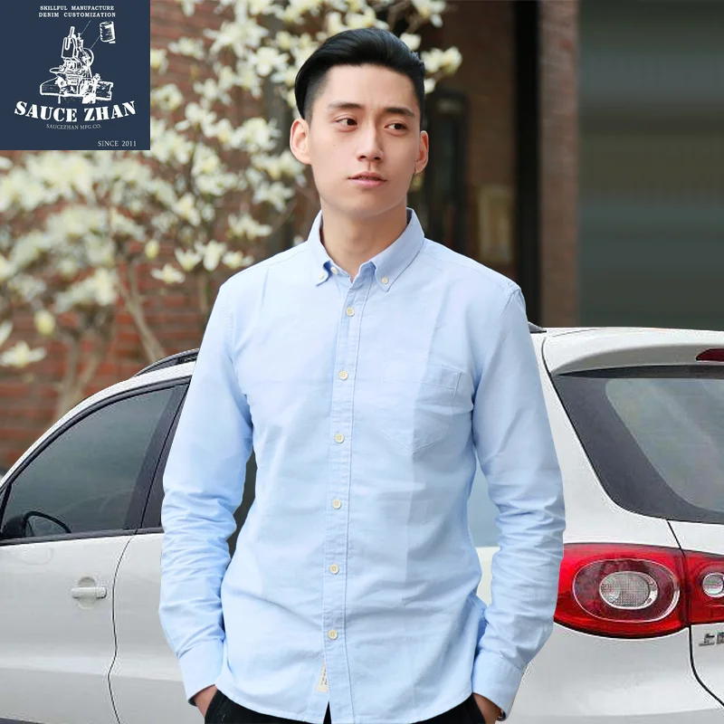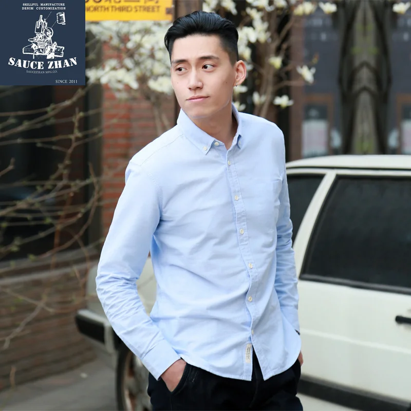 Оригинальная винтажная рубашка SauceZhan, хлопковая Мужская рубашка, приталенные мужские рубашки, мужская рубашка из Оксфордской ткани с длинным рукавом
