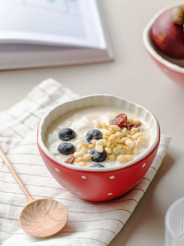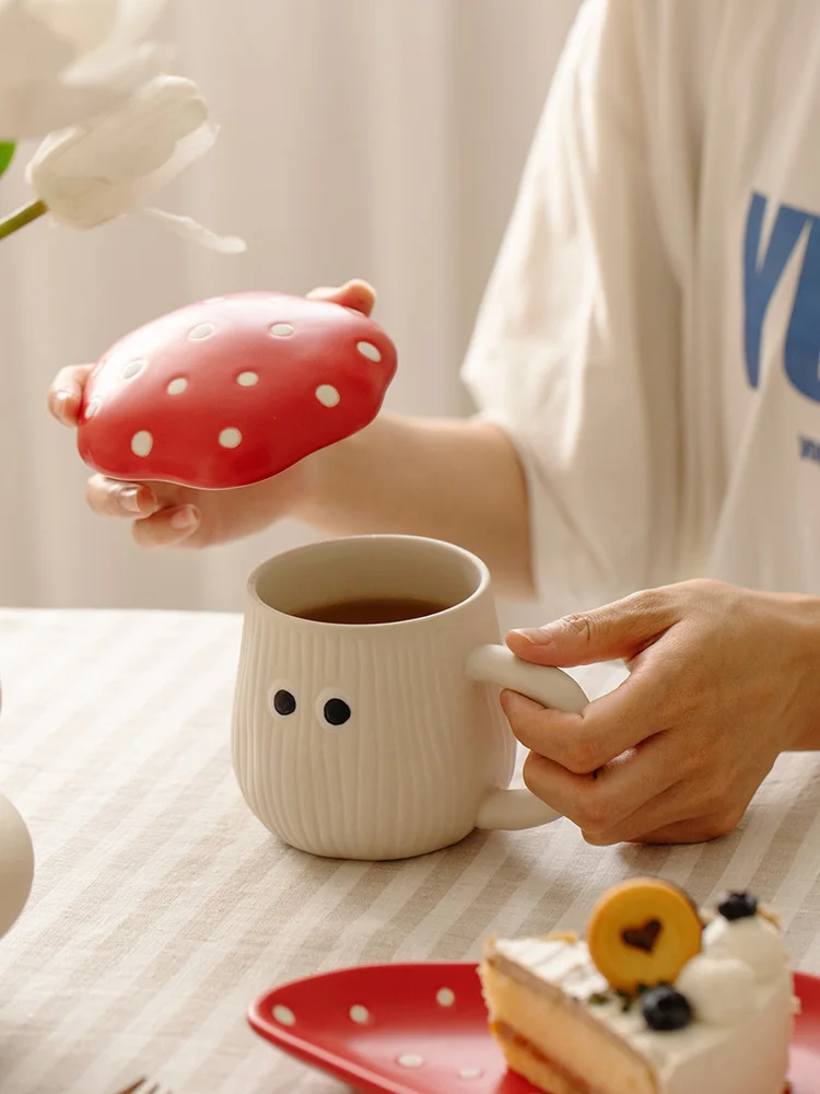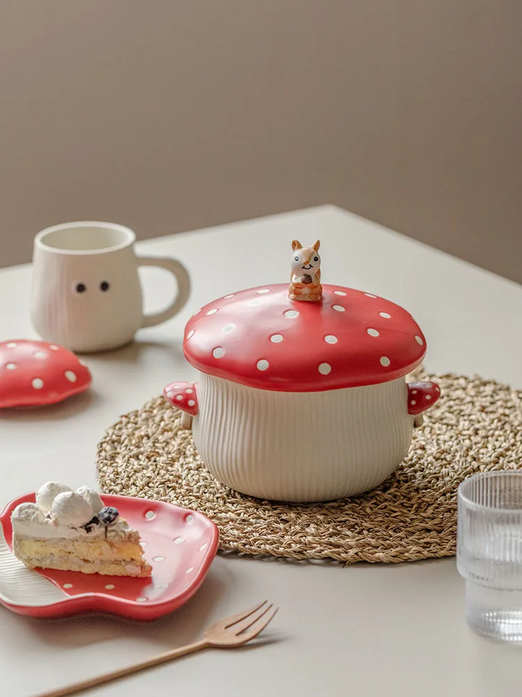 Детская посуда в скандинавском стиле карамельных цветов, керамическая посуда в виде красных грибов, чашка, десертная тарелка, миска для риса, лапша, миска для салата, ложка