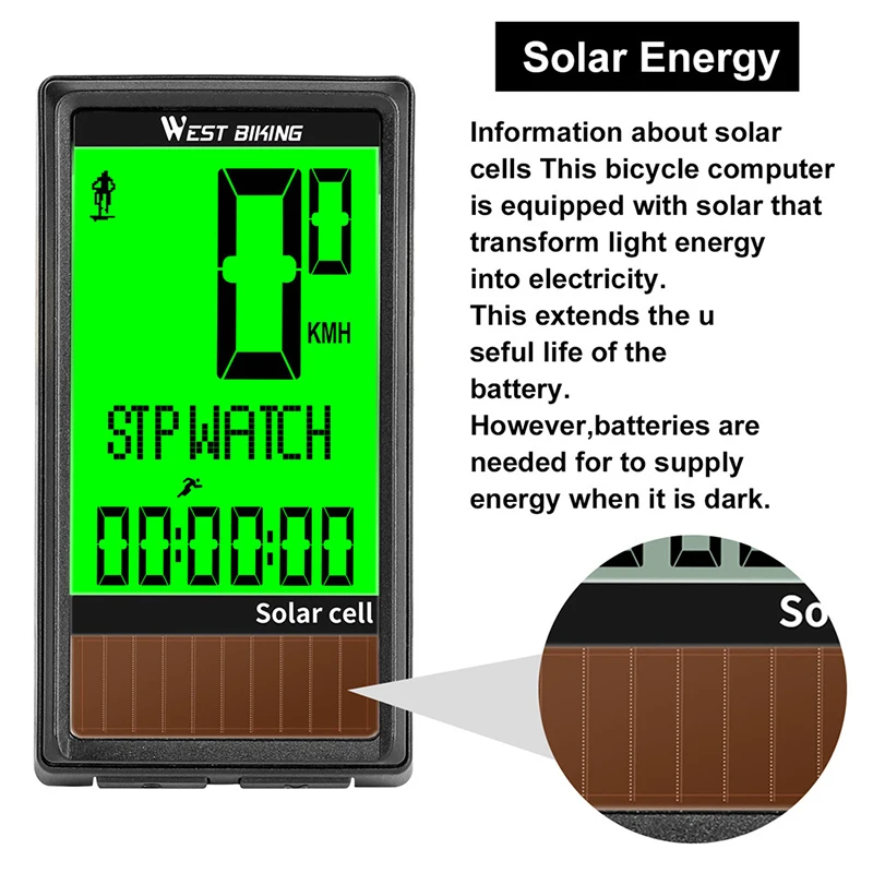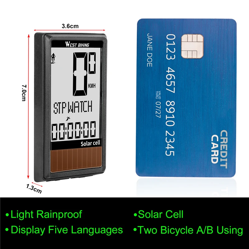 WEST BIKING 5 языков беспроводной компьютер для велосипеда на солнечной батарее Автоматическое включение/выключение велосипедный Спидометр Водонепроницаемая подсветка велосипедный секундомер