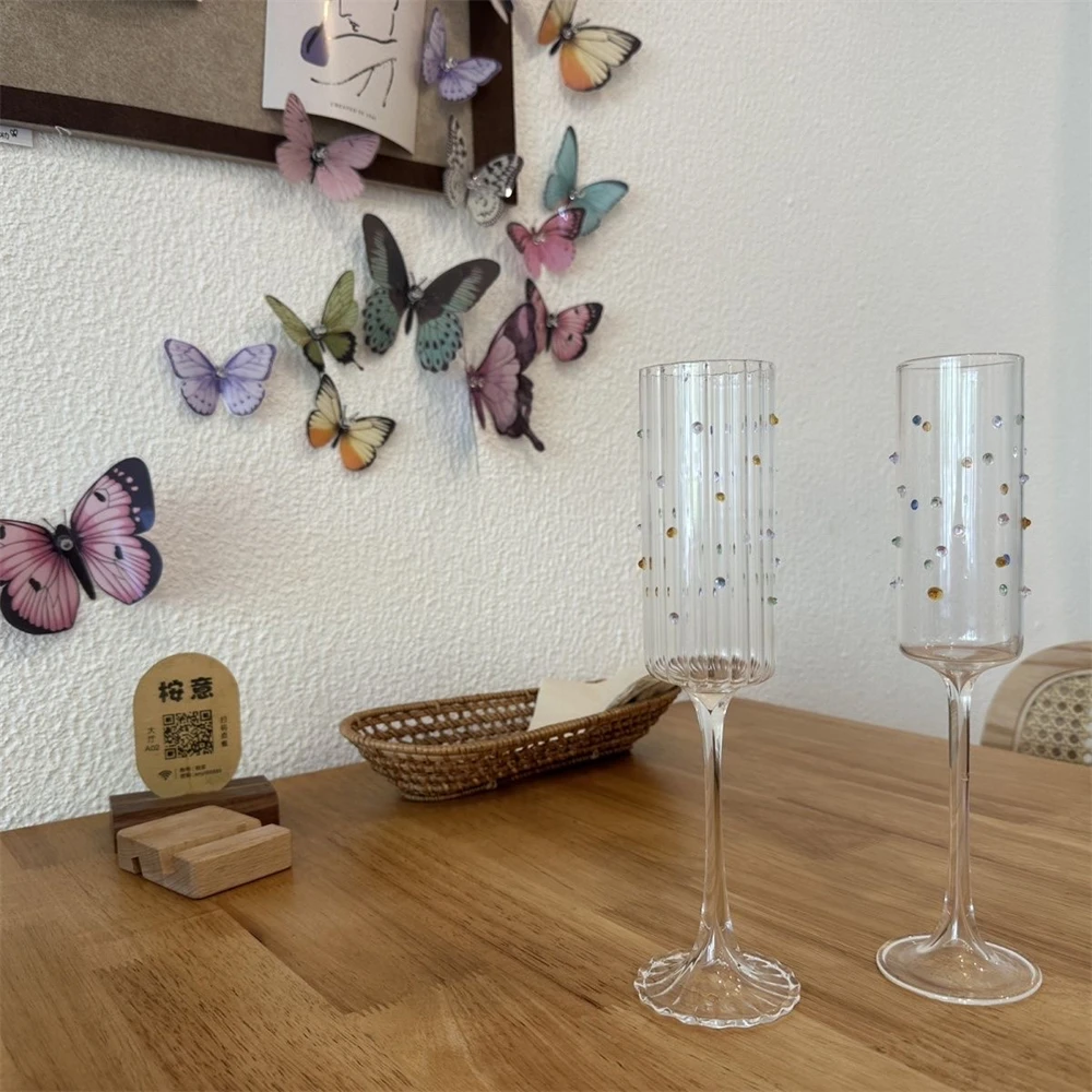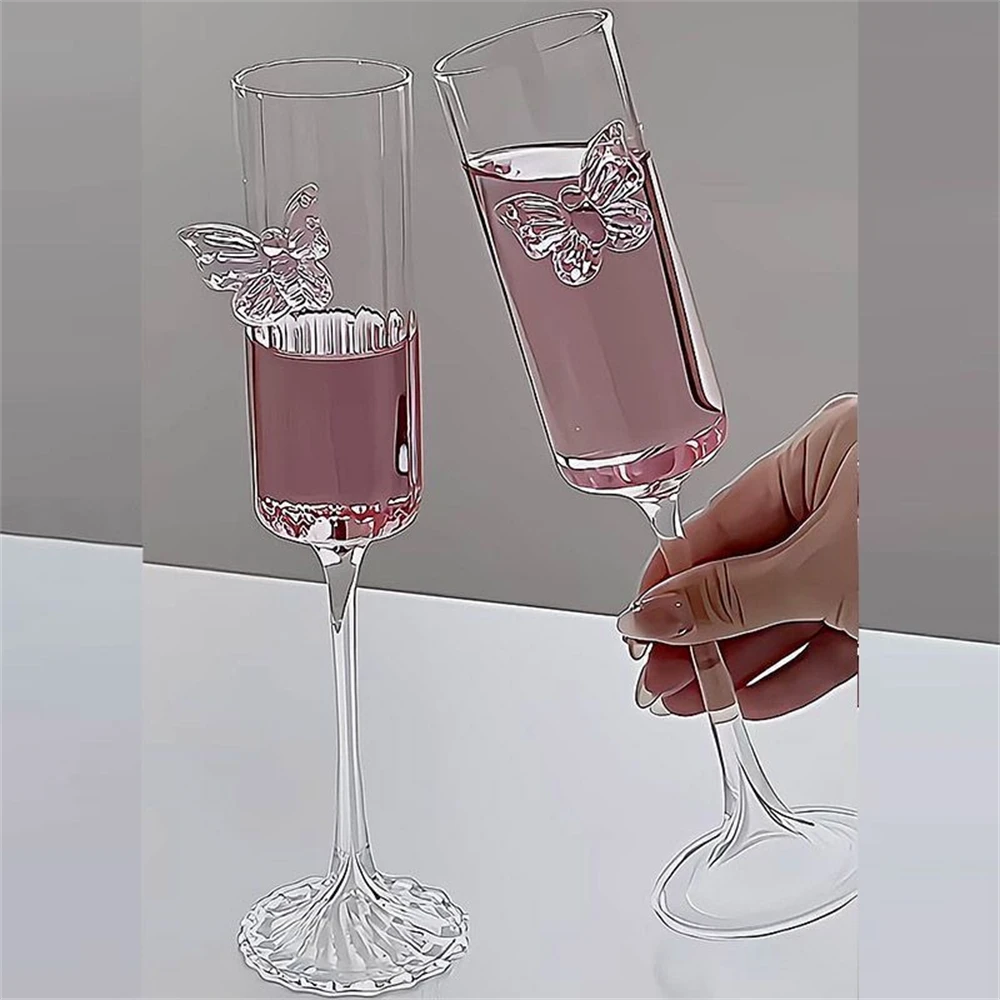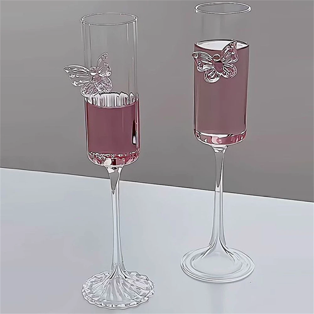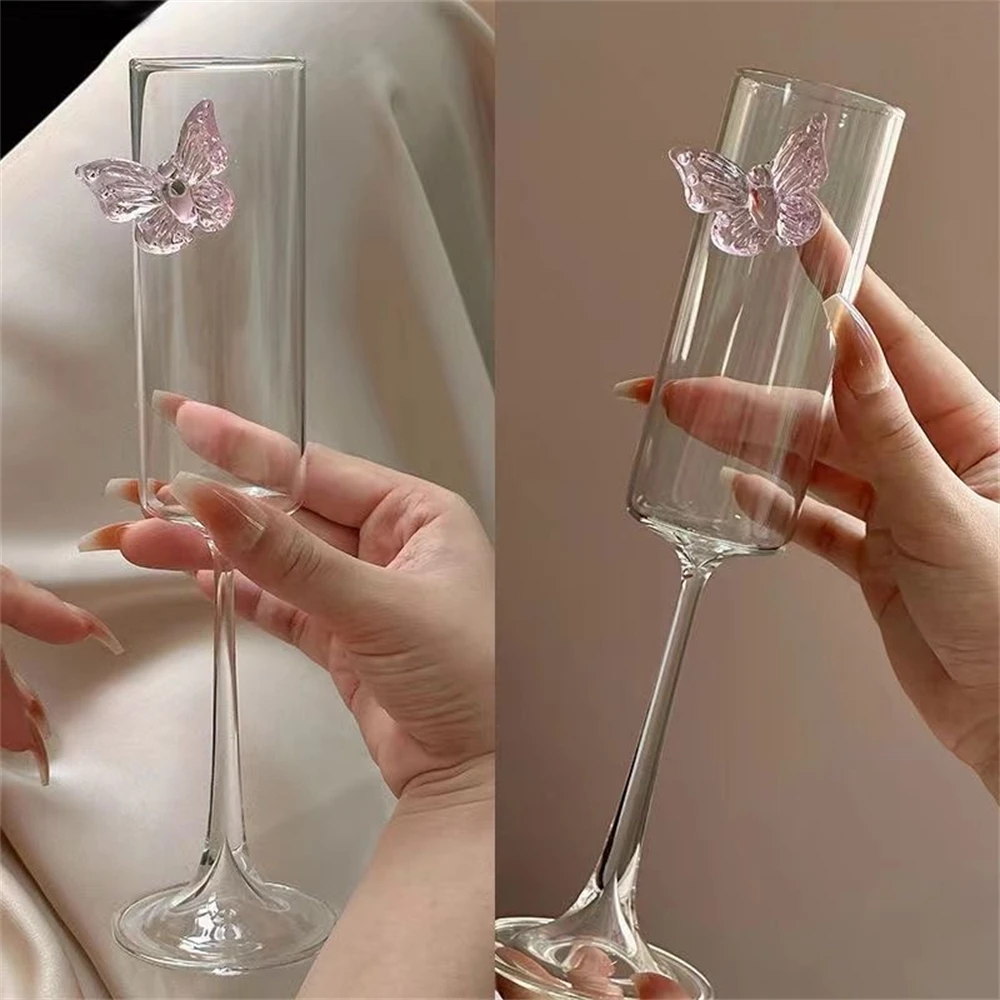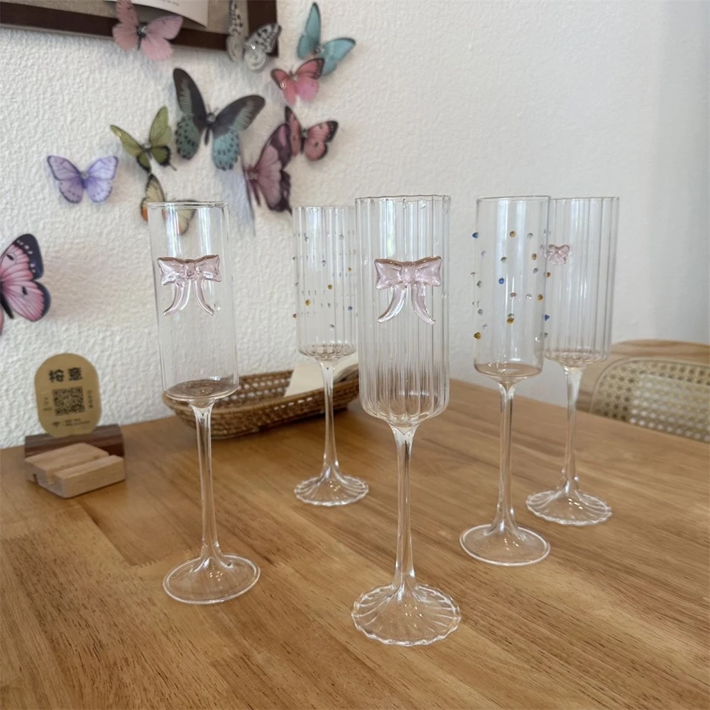 Бокал для шампанского Ins Стильный бант Бокал для вина Трехмерное украшение в виде бабочки Коктейльный бокал Простая бытовая прозрачная чашка