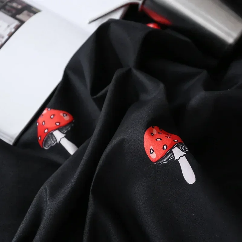 Комплекты постельного белья с красным грибным узором, мягкая подкладка, двойной пододеяльник, наволочка, размер королевы и короля, черный цвет, 3 шт.