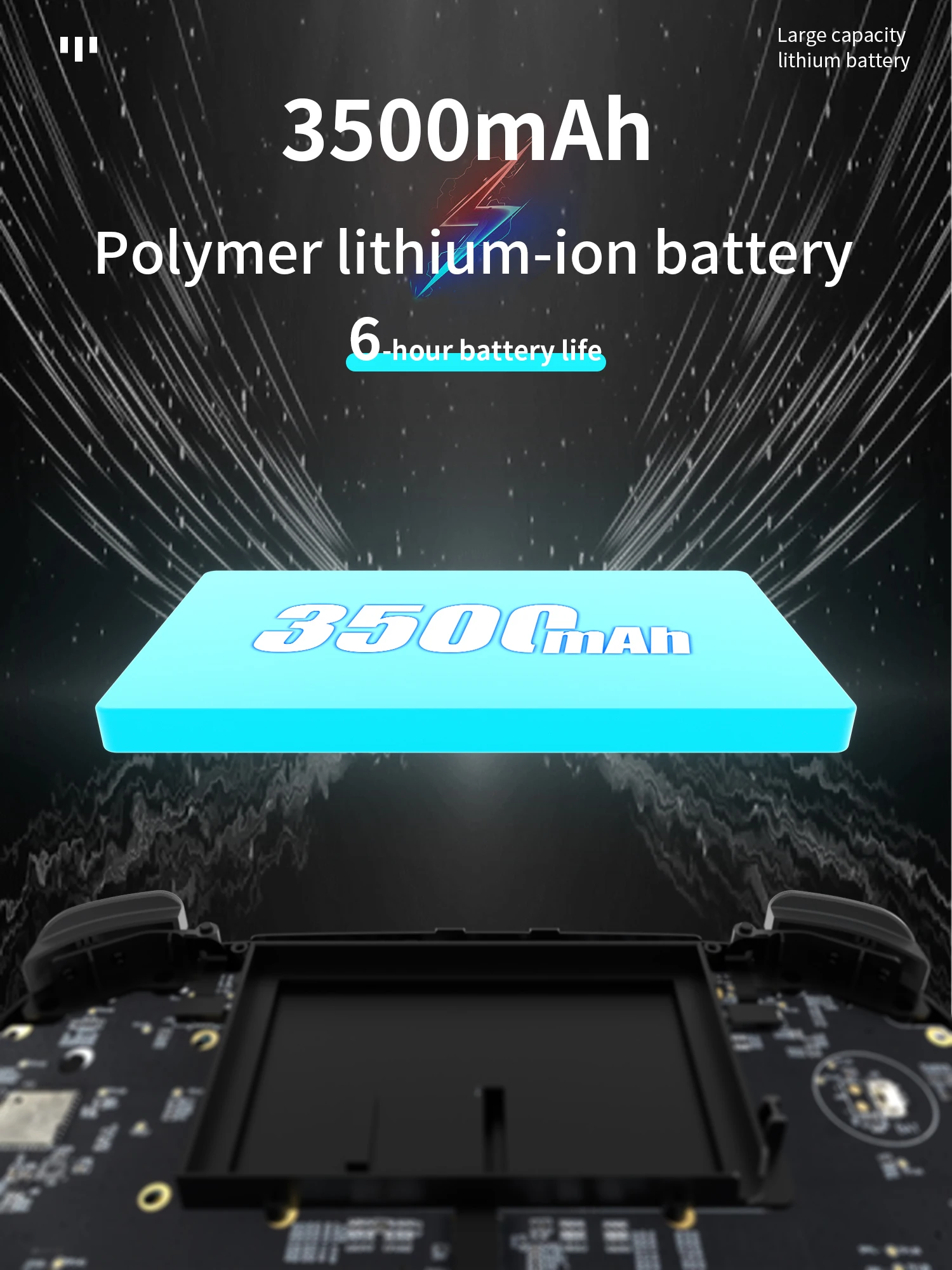Built-in 3500mAh high capacity lithium battery for ultra-long standby time and battery life. Support up to 6 hours game playing. Support C2C charger.
