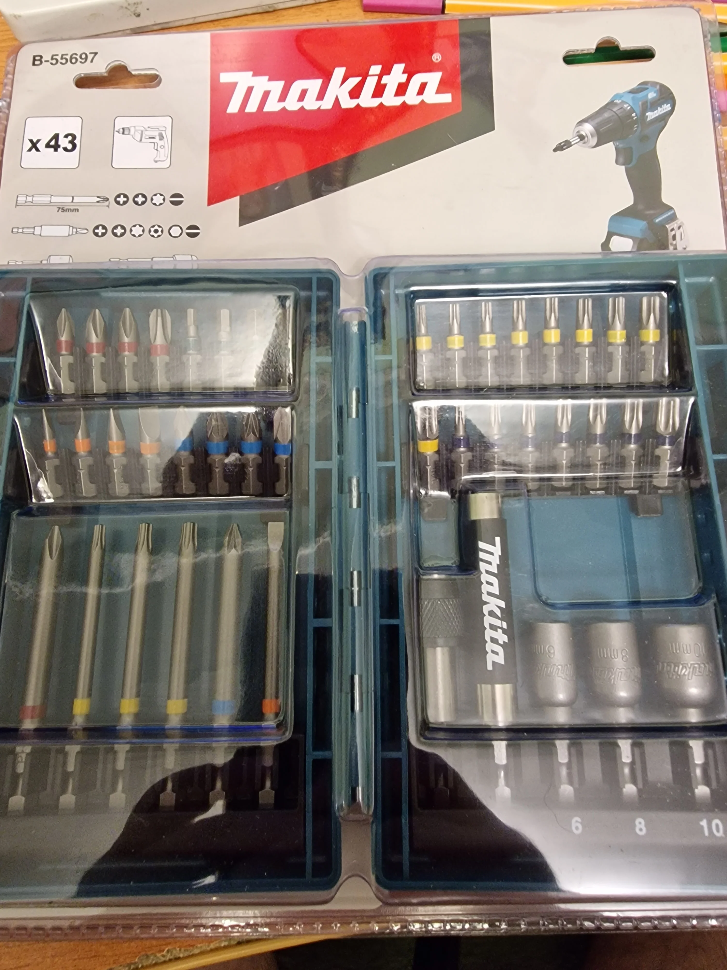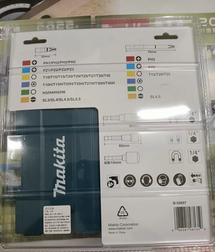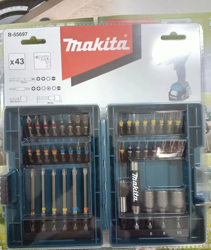 Набор насадок для электрической отвертки Makita B-55697 43 шт., цветная коробка, шестигранная розетка крестового типа, аксессуары для электродрели