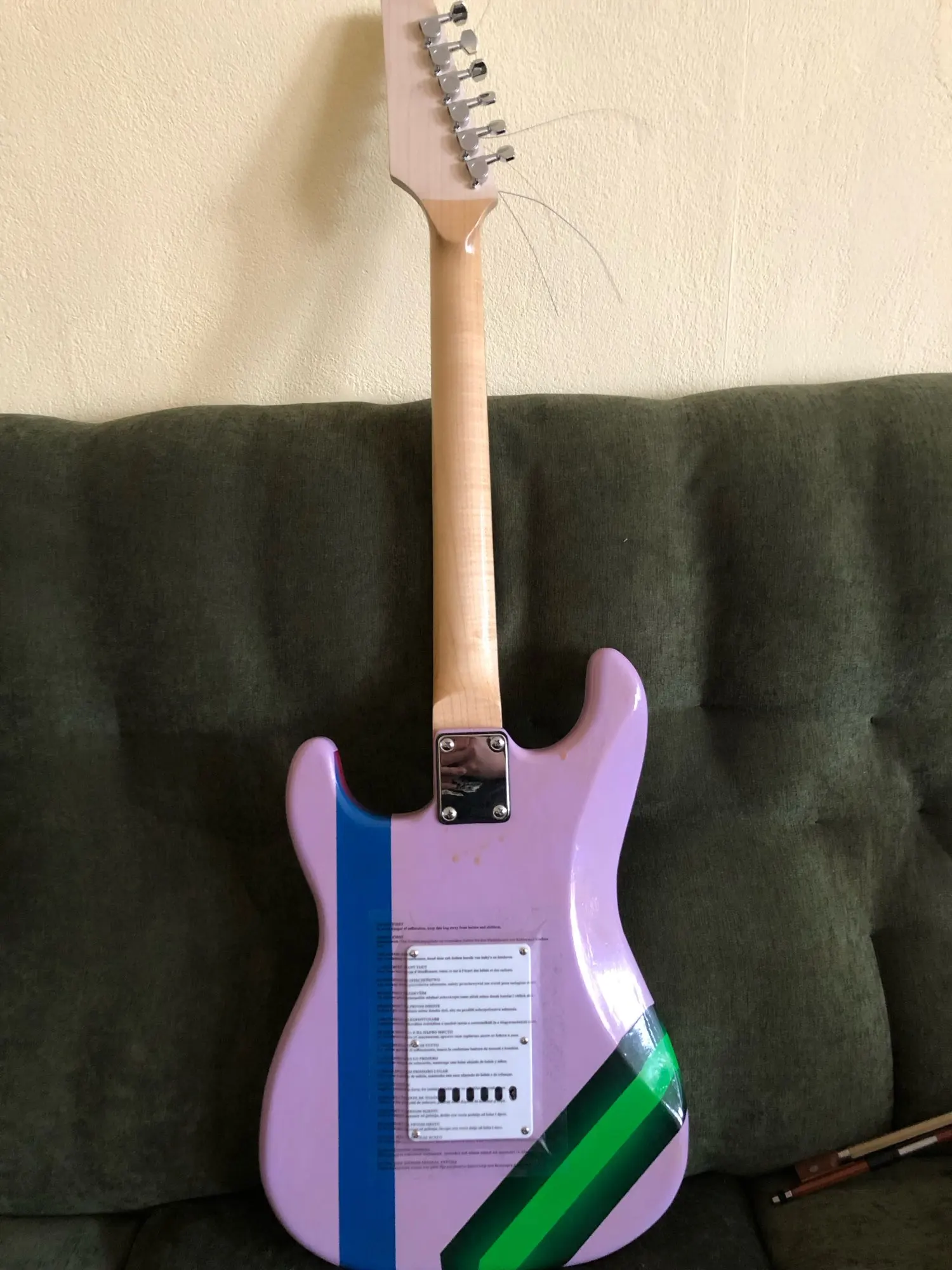 Ну что сказать, дошло очень быстро. Походу отправляют из россии. И качество такое, как ПТУшники табуретки делают, походу какой то трудовик себя за китайца выдаёт.) Хотя гриф хороший, прямой, без сколов, и достаточно твёрдый. Сама дека из очень мягкого дерева, как пенопласт какой то. Сколы и шпатлёвка присутствуют, но не критичные. Электрика вся работает, звучки звучат. Комплектные струны плавают по звуку, заменил - лучше стало. Лады по краям немного подтачивал, были цепляющиеся углы. Кабель норм, но коротковат. Продавец забыл пружины для тремоло положить, я ему написал, он реально взамен выслал ремень для гитары (пружин не было говорит). Можно смело брать, особенно за 3,5 тыщи, это подарок для тех, у кого в молодости не было электрогитары, и кому интересно самому грунтовать, красить, лакировать, собирать. Вроде даже звучит, мензура на новых струнах отстроилась. Провода припаивайте черные - один к струнам, другой на центр контакт джека, красный на массу джека, если наоборот, будет фонитMihail M. 25 июля 2022