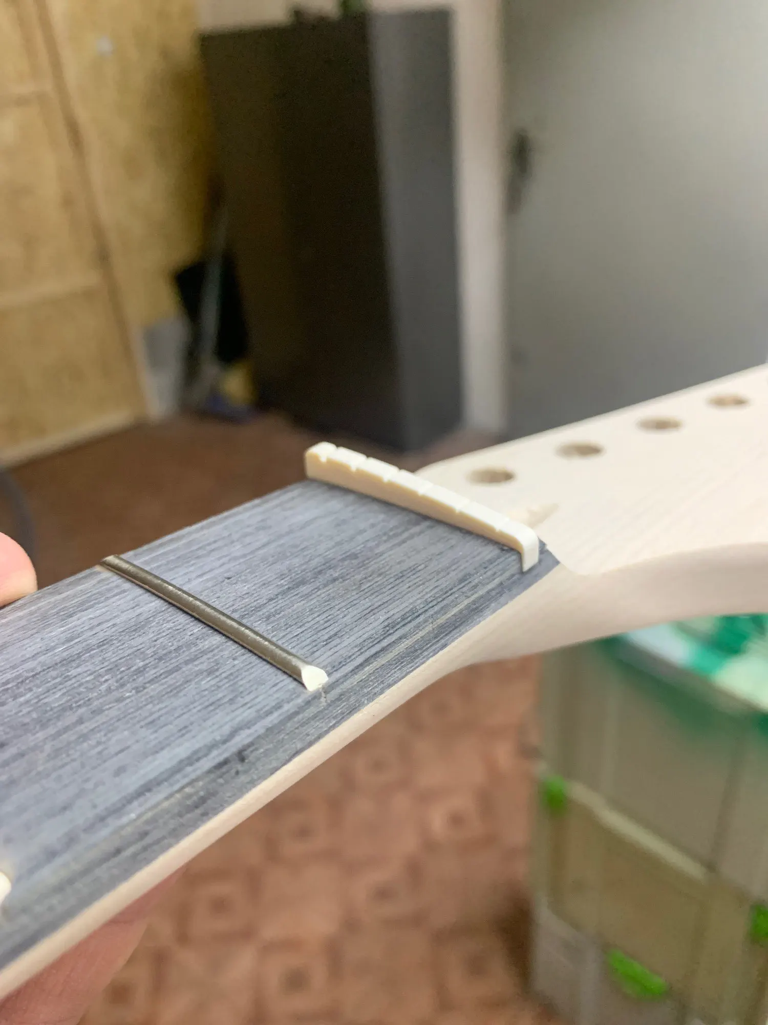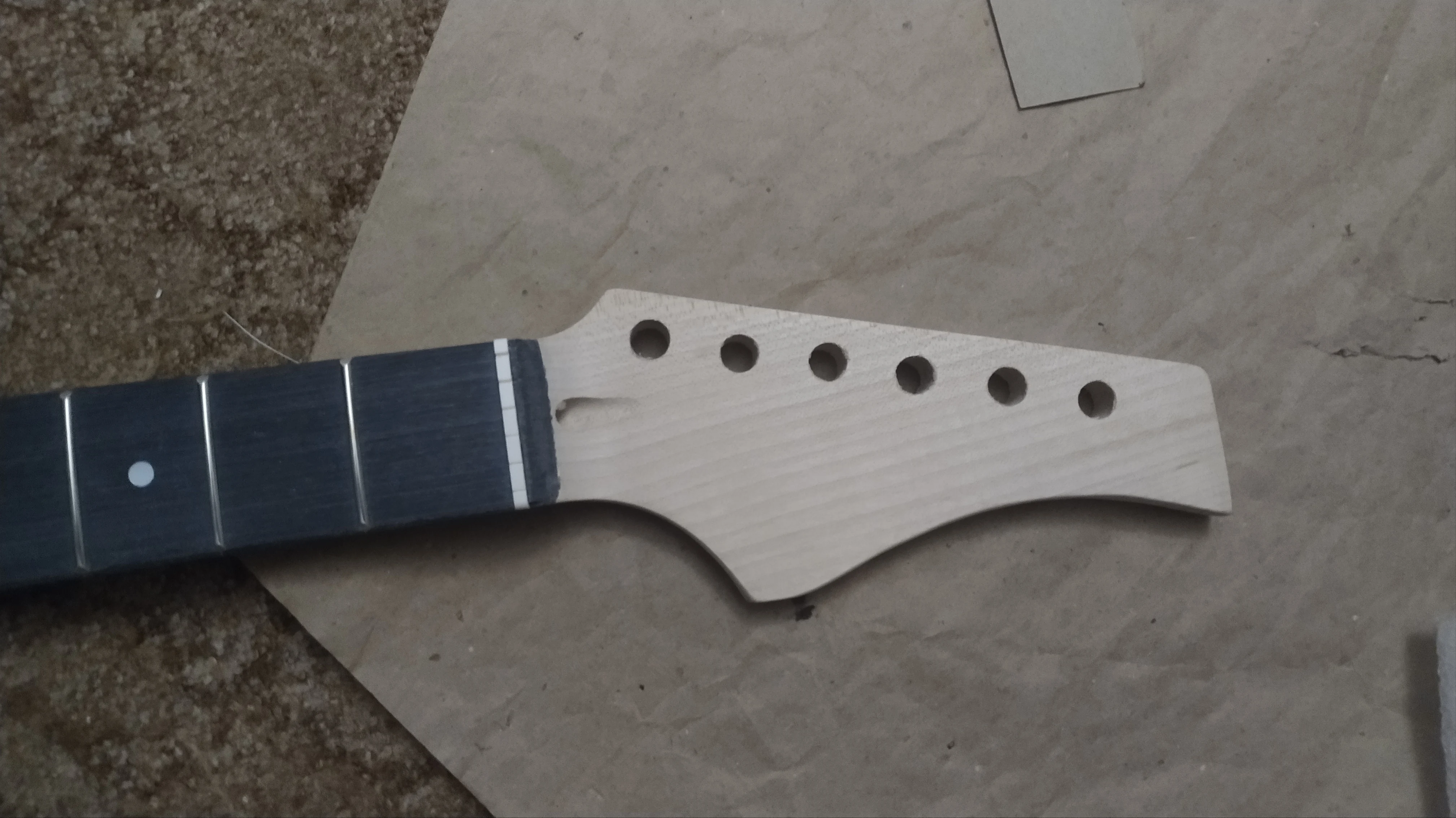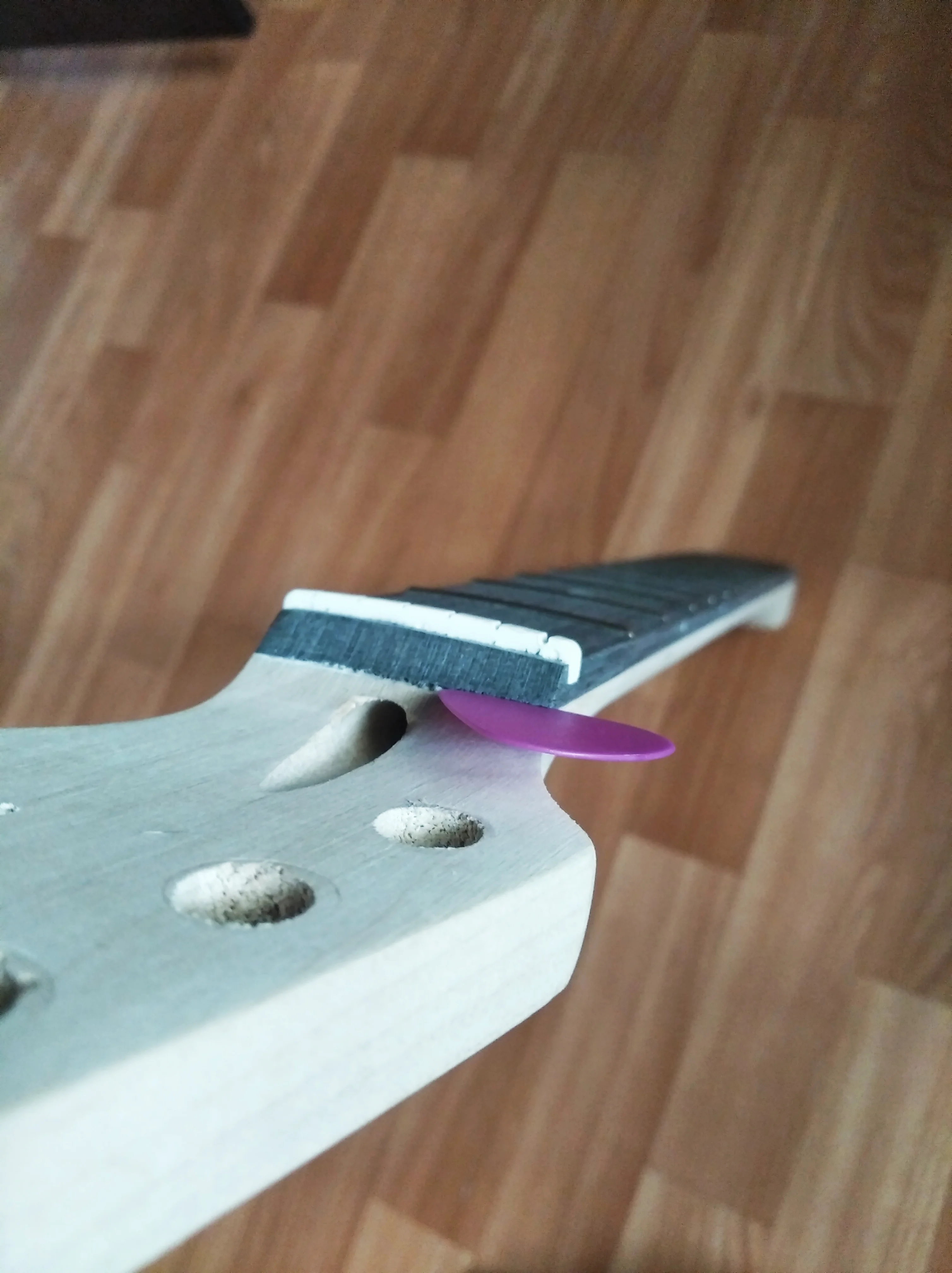 Описание товара странное) "Корпус - феникс, шея - клён, гриф - композитный". "Шея" ладно - neck... А под "композитным грифом" имеется ввиду что гриф и накладка из разного дерева - композитный... Товар низкого качества. Фрезеровка местами внешне кривая, но расположена верно. Корпус склеен из остатков древесины на производстве. Внизу около гнезда джека, изготовителем приклеен отвалившийся кусок. На нижнем роге тоже отвалился - там не приклеили. У головы грифа накладка не до конца приклеена - в щель влезает медиатор 0,60 мм. Плохо запрессованы лады. Обработка ладов низкого качества. Звучит гитара совсем плохо. Даже с тремоло gotoh и звукоснимателями seymour duncan ssl-1 звук дурацкий. Ни в коем случае не покупайте себе это как единственный инструмент) Относитесь к этому как к игрушке. Или как к подопытному) Мне нужен был именно подопытный - и я его получил.Aleksandr A. 19 августа 2022