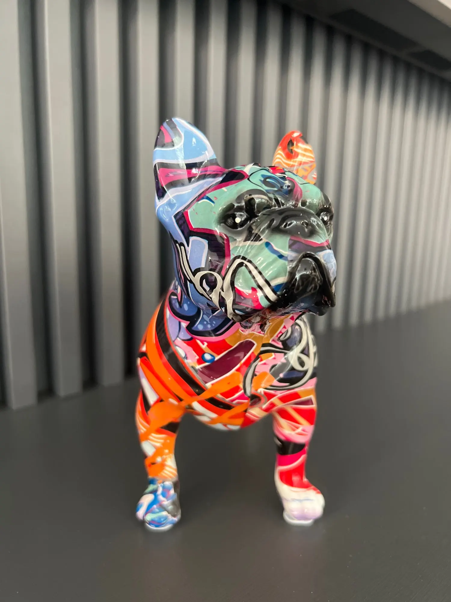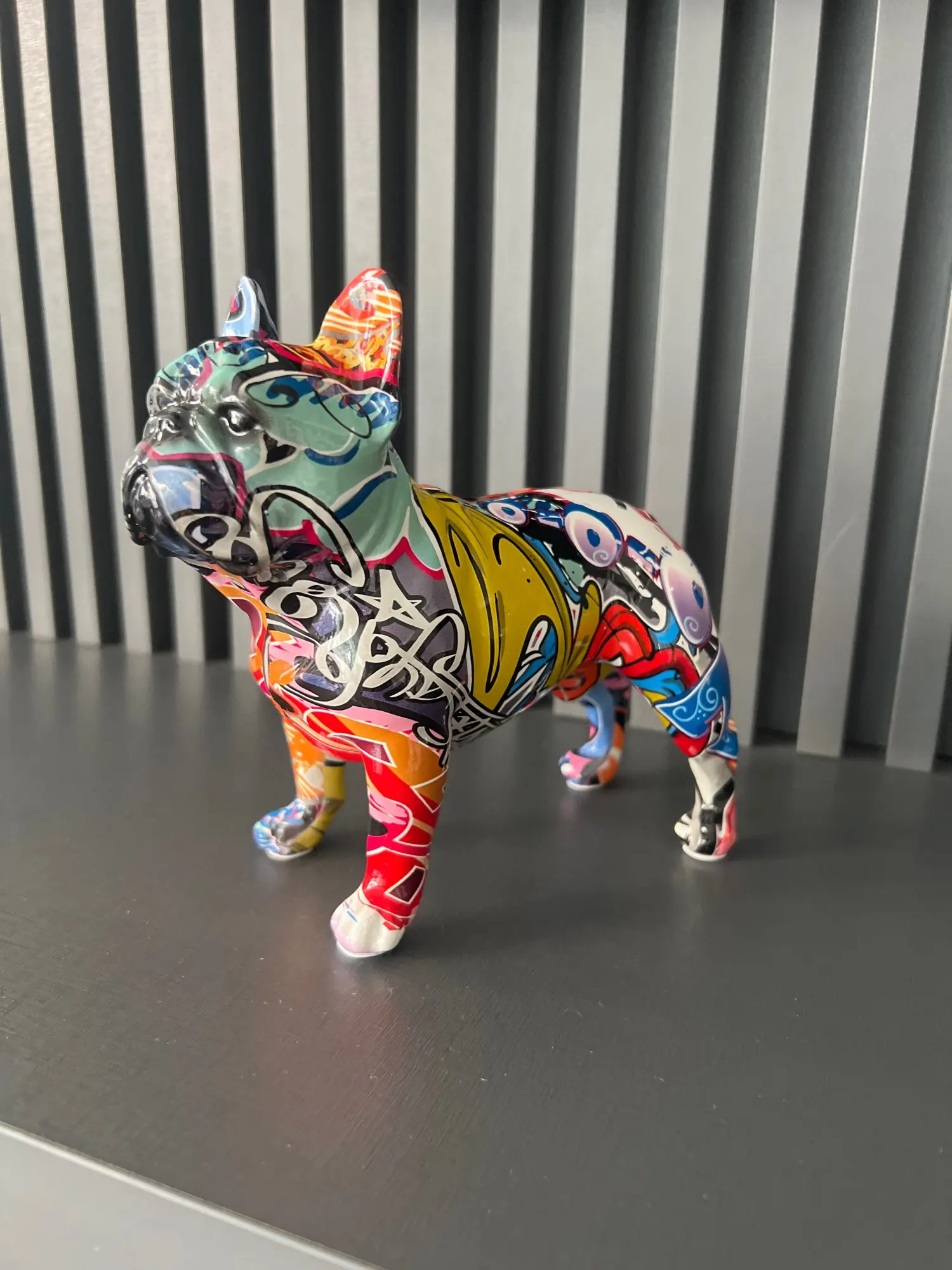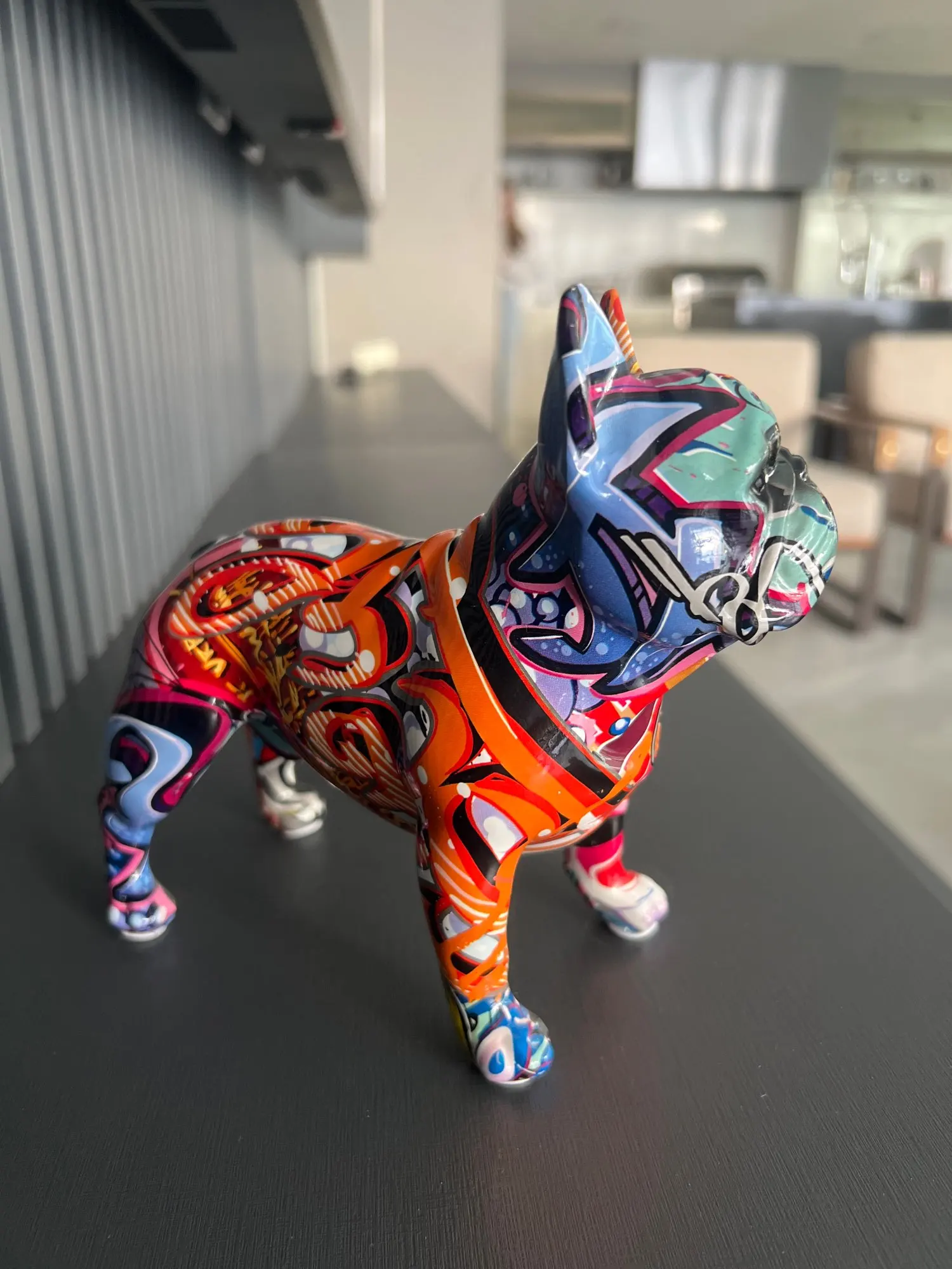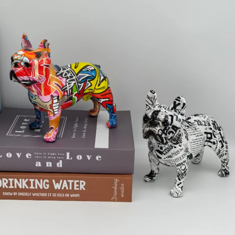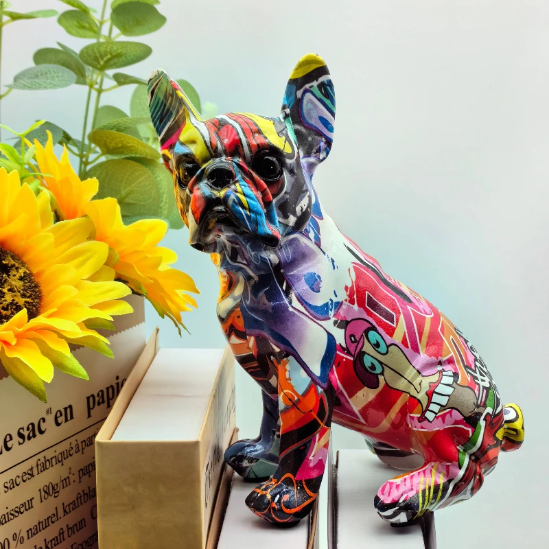 Красочный стоячий Французский бульдог, статуя из смолы, украшение для домашних животных, DIY граффити, настольное животное