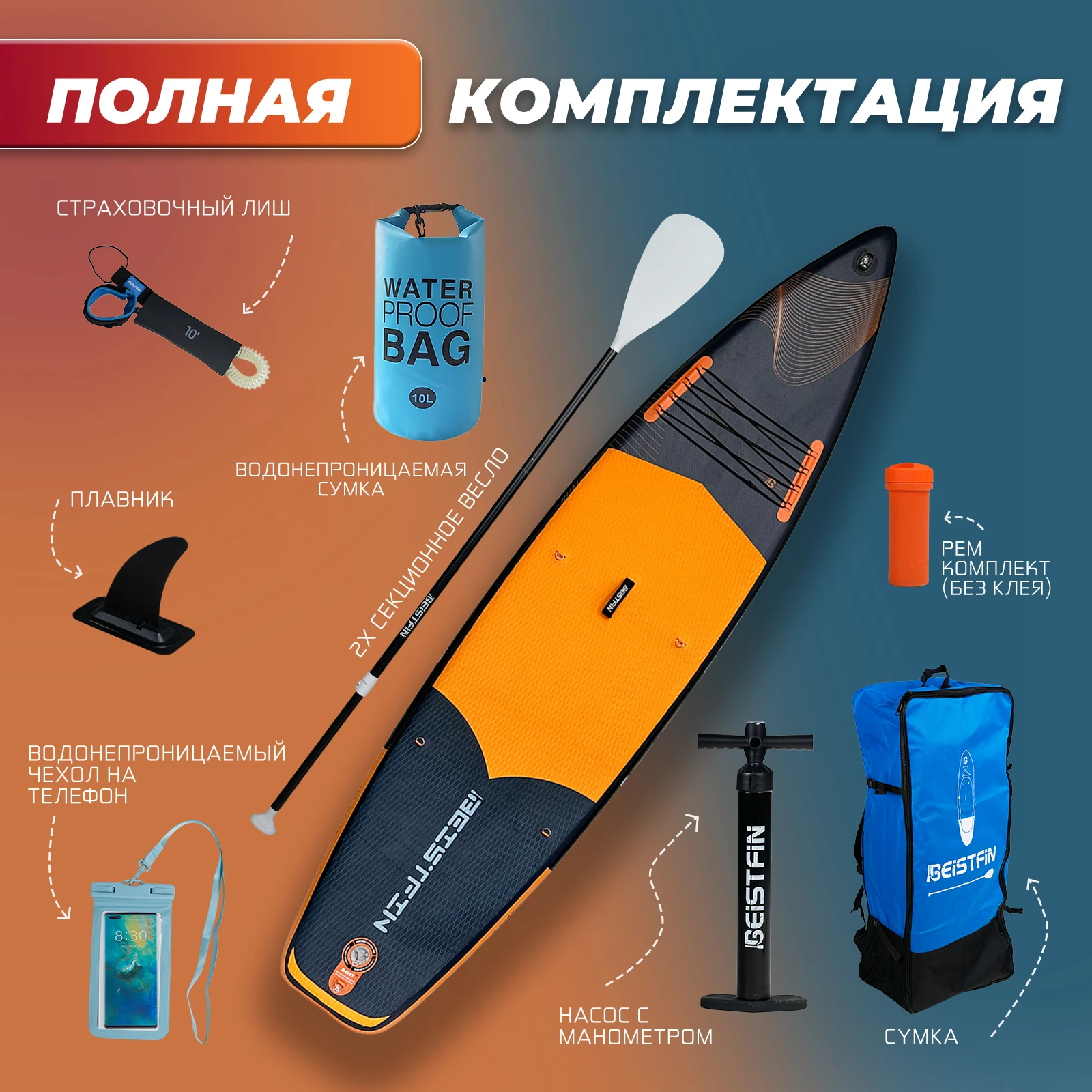 Одним из ключевых преимуществ сапборда BEIST 11'6" является его полная комплектация. Как отмечает пользователь 5791 u.: "отличный сап, комплектация супер, есть водонепроницаемая сумка на 10 литров, чехол для телефона, насос, сумка-рюкзак, три плавника, лиш, ремкомплект, ну и весло. все хорошего качества". Такой богатый набор позволяет сразу же после получения посылки отправиться на водную прогулку, не докупая дополнительные аксессуары.