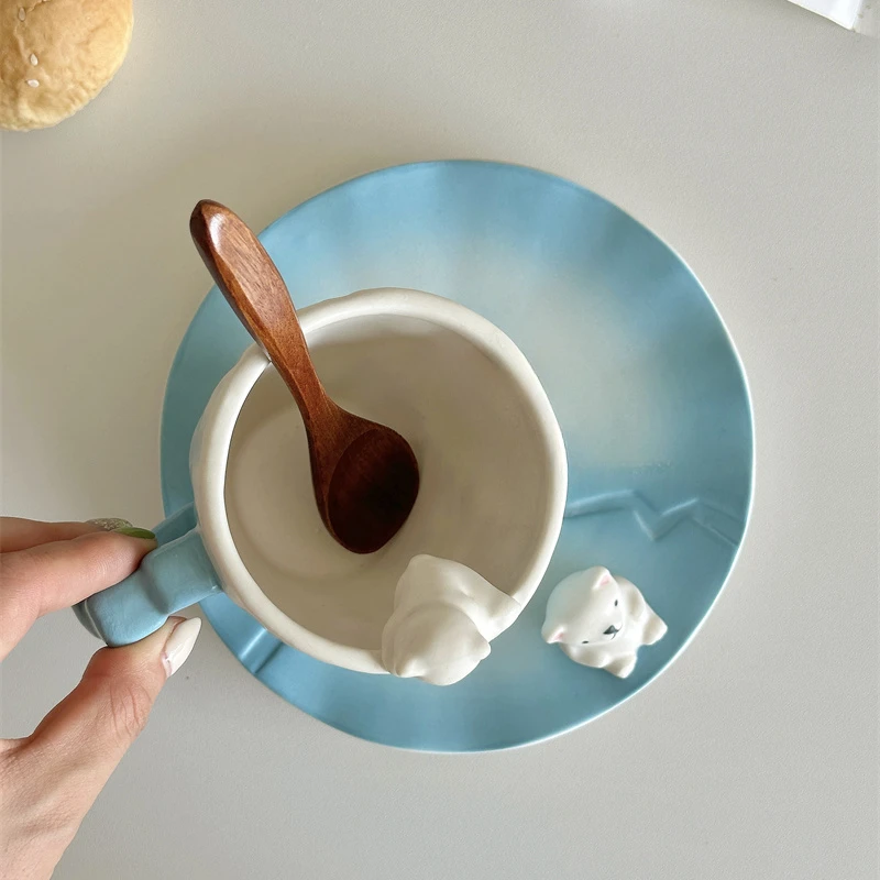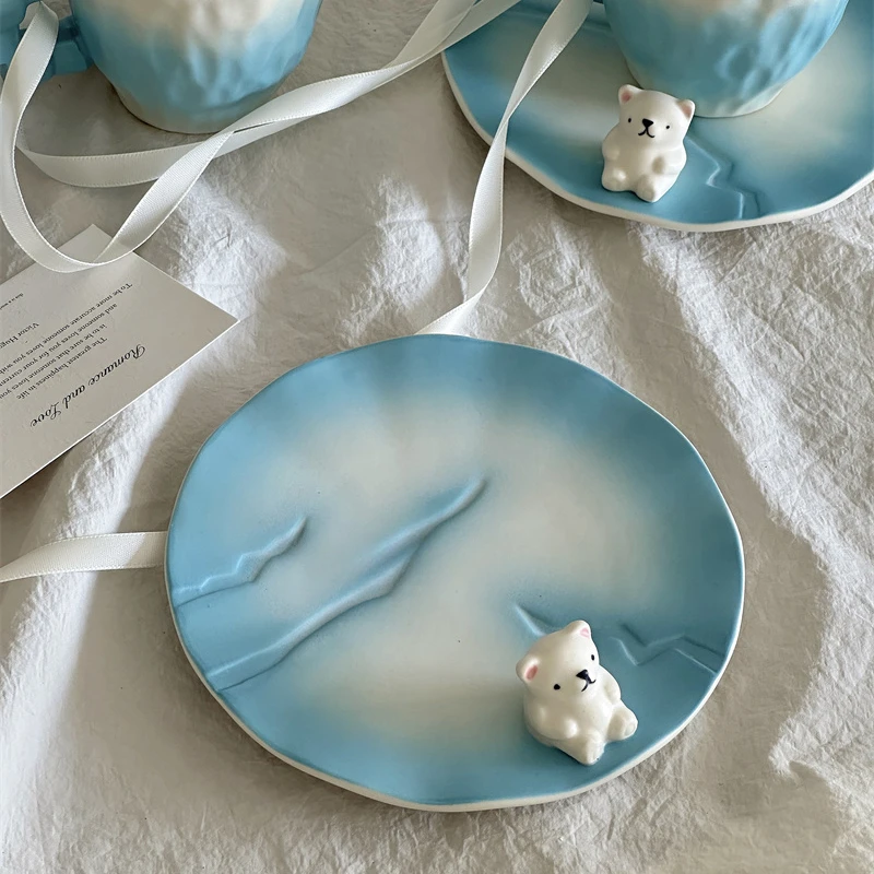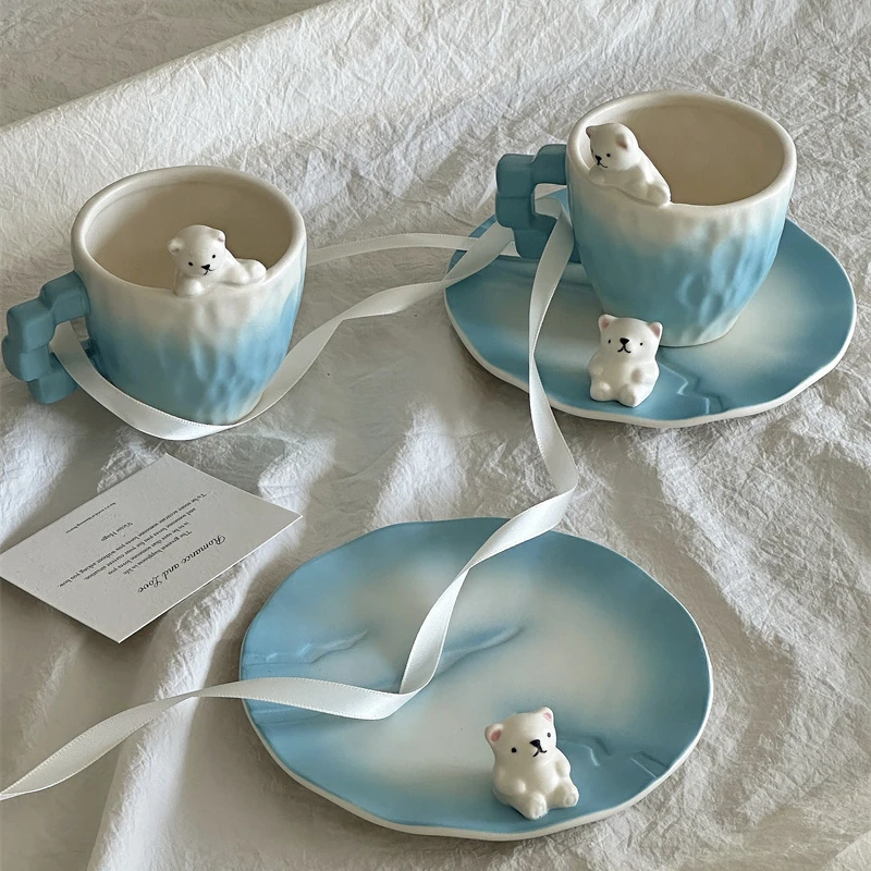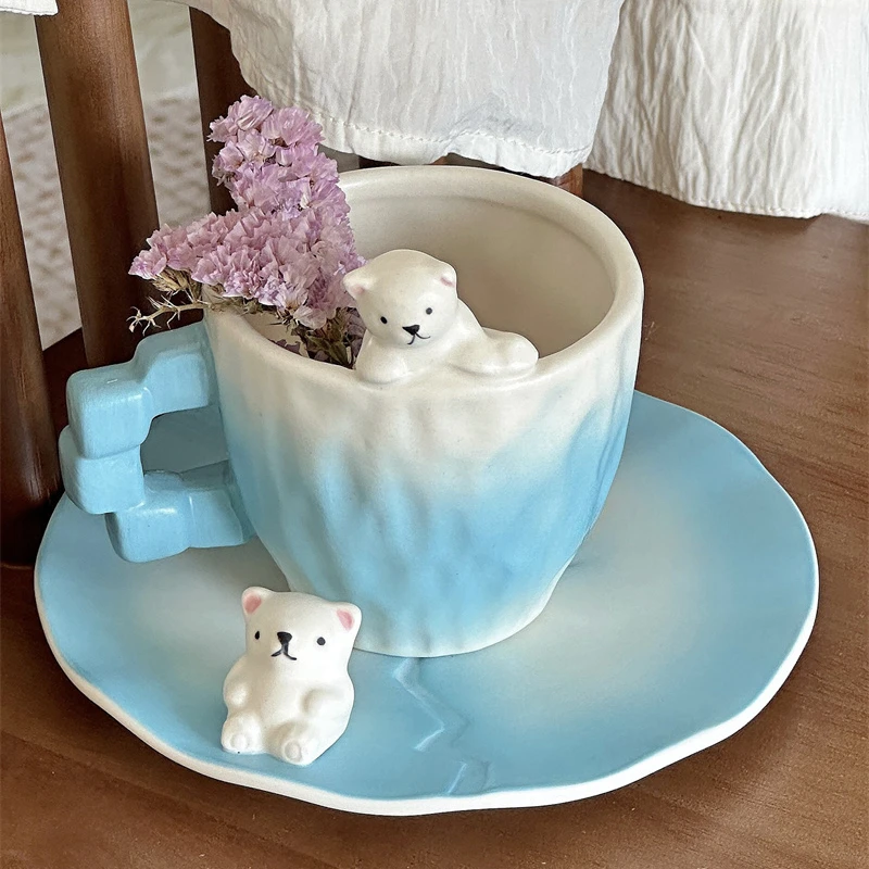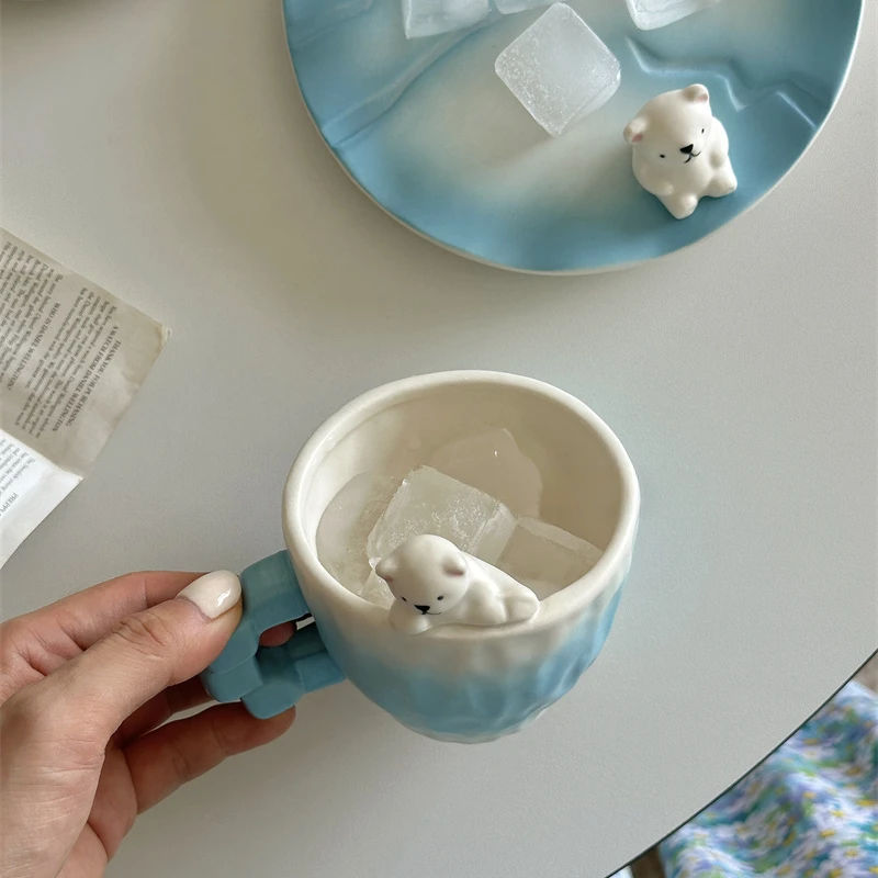 Красивая керамическая кофейная чашка ручной работы с белым медведем, дизайнерская чашка для льда, кофейная чашка