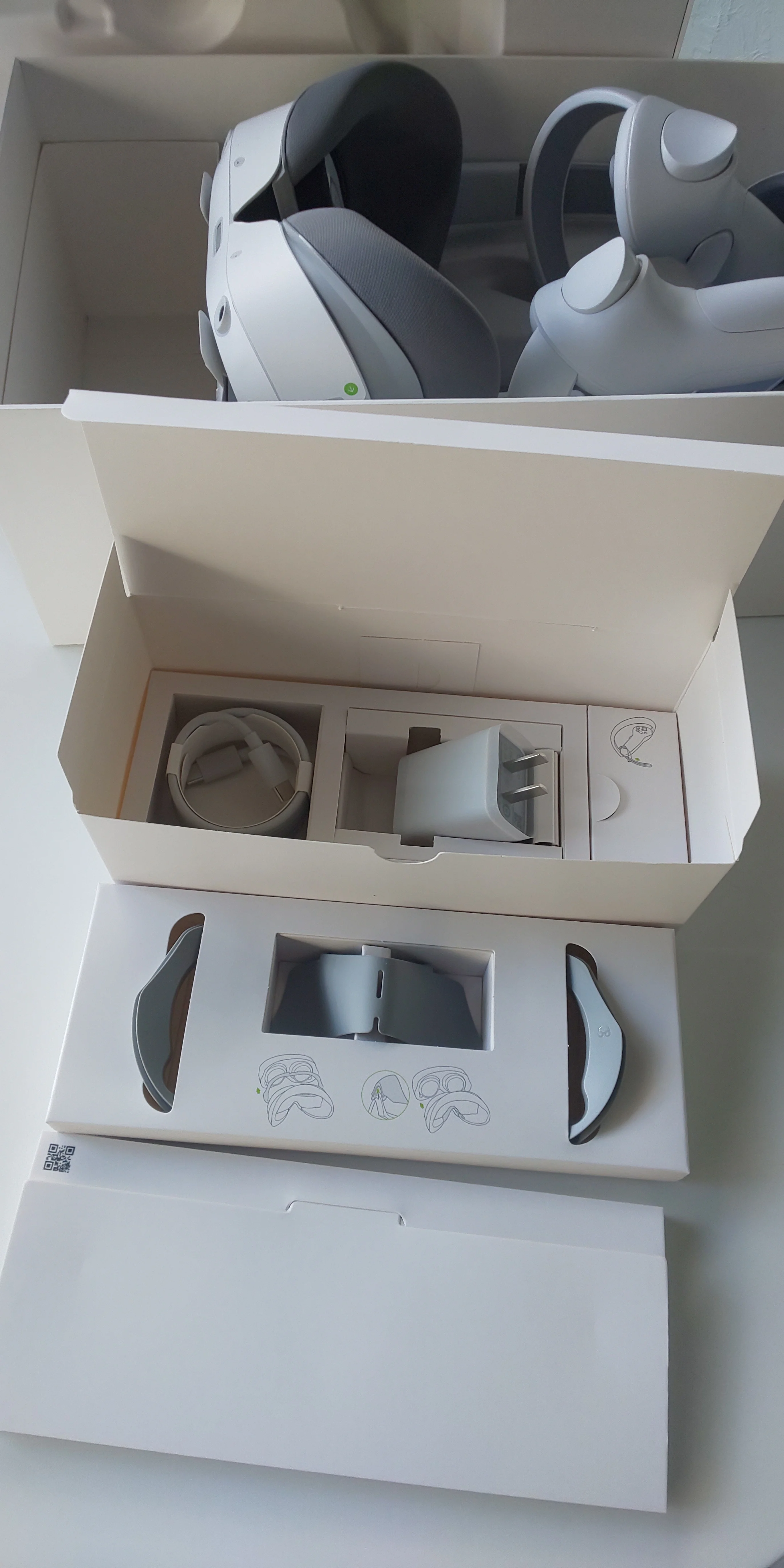 - Package lists:VR Headset * 1,Controllers * 2,1.5V AA Alkaline Batteries * 4,Glasses Spacer * 1,Nose Pad * 1,Controller Lanyards*2,USB-C Power Adapter * 1,USB-C to C 2.0 Data Cable * 1,Quick Guide * 1,User Guide * 1,Safety and Warranty Guide * 1