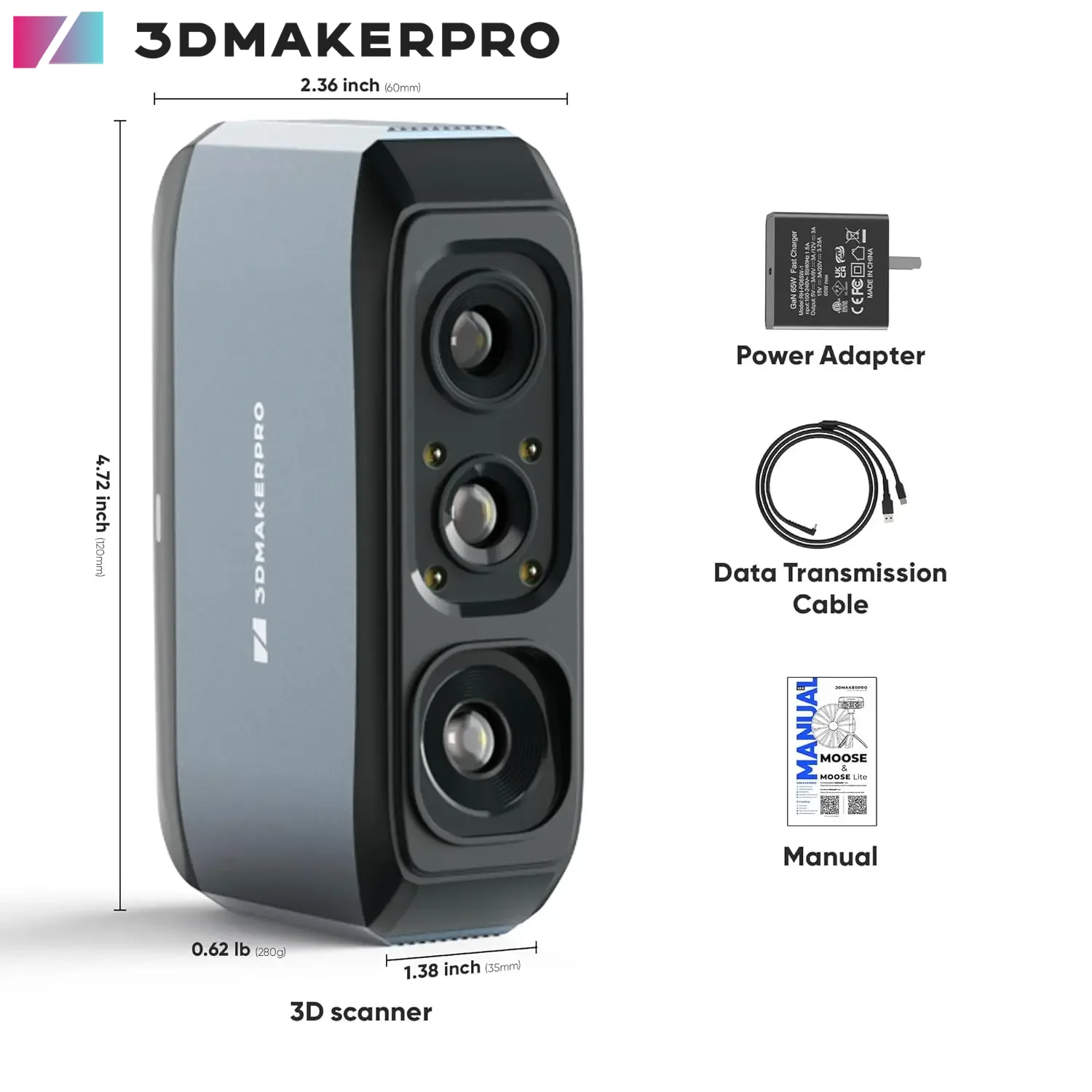 3D-сканер для 3D-печати, высокая детальная точность, 24-битная цветная камера, линзы с защитой от сотрясений, совместимые с Windows/MacOS, Moose