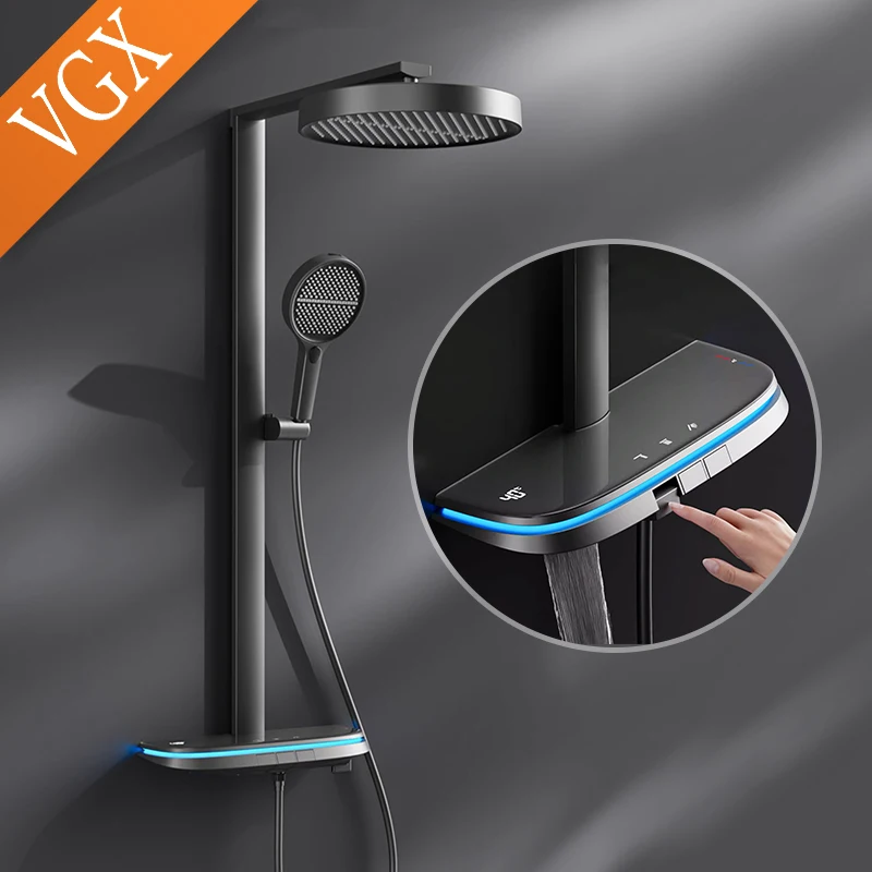Умная термостатическая душевая система VGX, набор с цифровым дисплеем, душевой набор для ванной комнаты, набор насадок для душа с дождевой насадкой, белый набор смесителей для душа