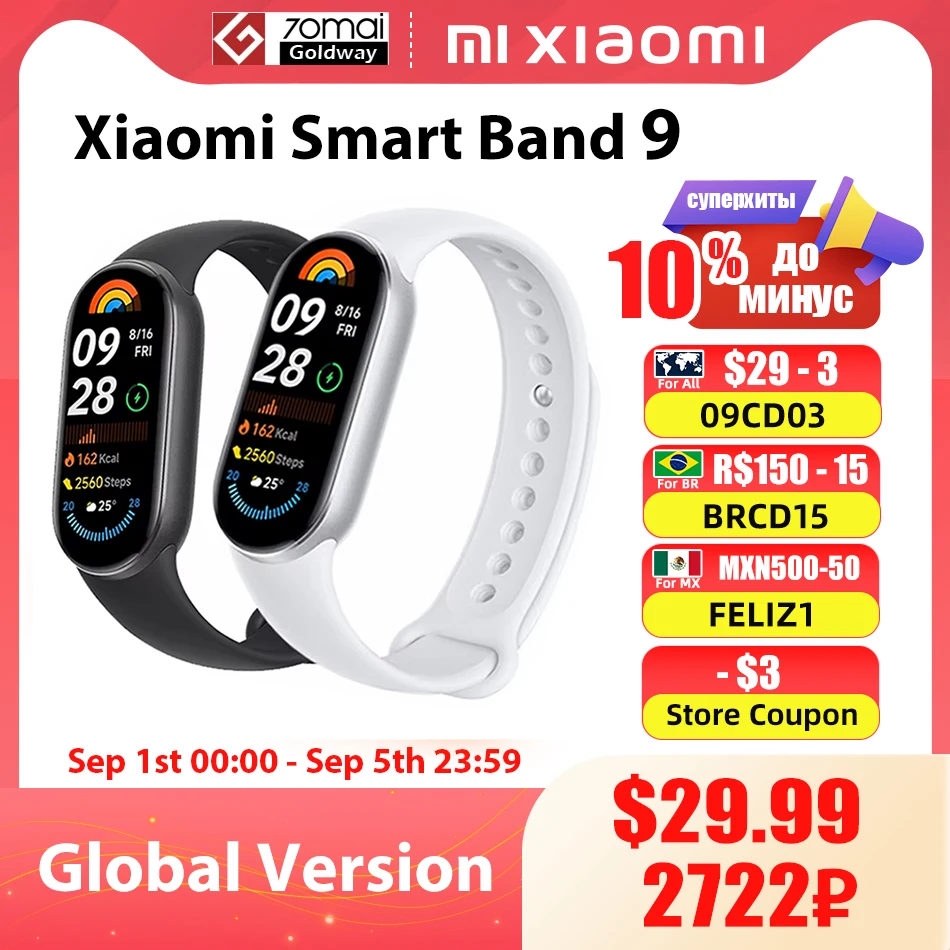 Глобальная версия Xiaomi Smart Mi Band 9 за ~2785 руб с купоном продавца