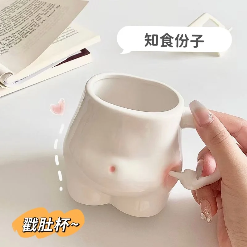 European 320ml Ceramic Cup Cute Belly Cup Coffee Cup Set Creative Art Milk Cup Modern Living Room Home Decoration Accessories