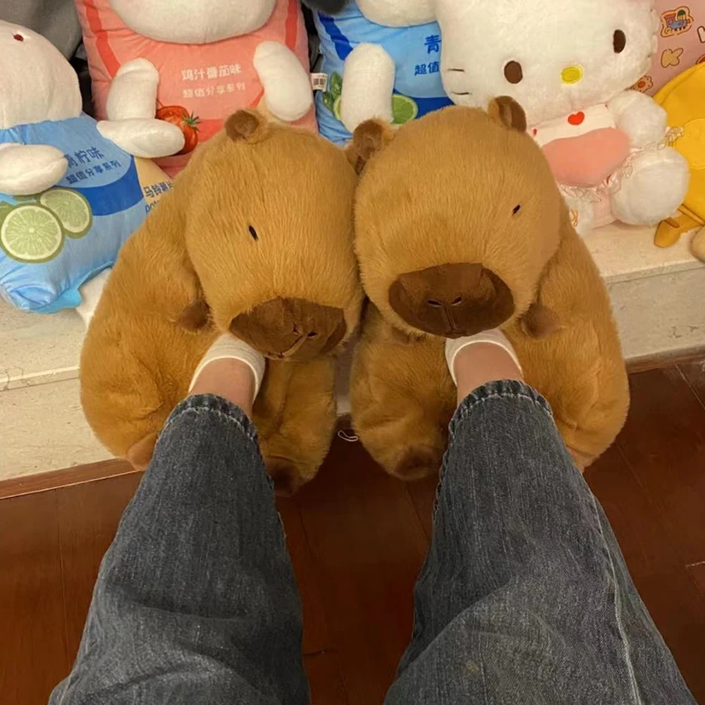 Плюшевые тапочки capyбара, женские милые Мультяшные милые босоножки с животными, уютные босоножки capiбара, домашние искусственные подарки на день Святого Валентина