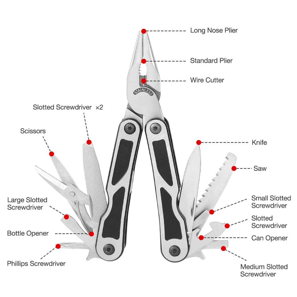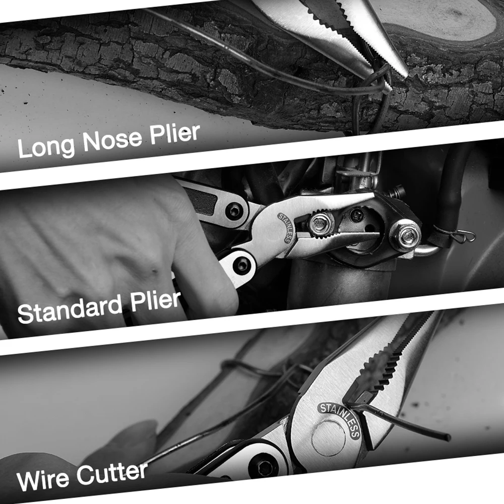 Тонкогубцы из нержавеющей стали WORKPRO, Мультитул 15 в 1 для обрезки и зачистки проводов, универсальные инструменты для кемпинга и пешего туризма