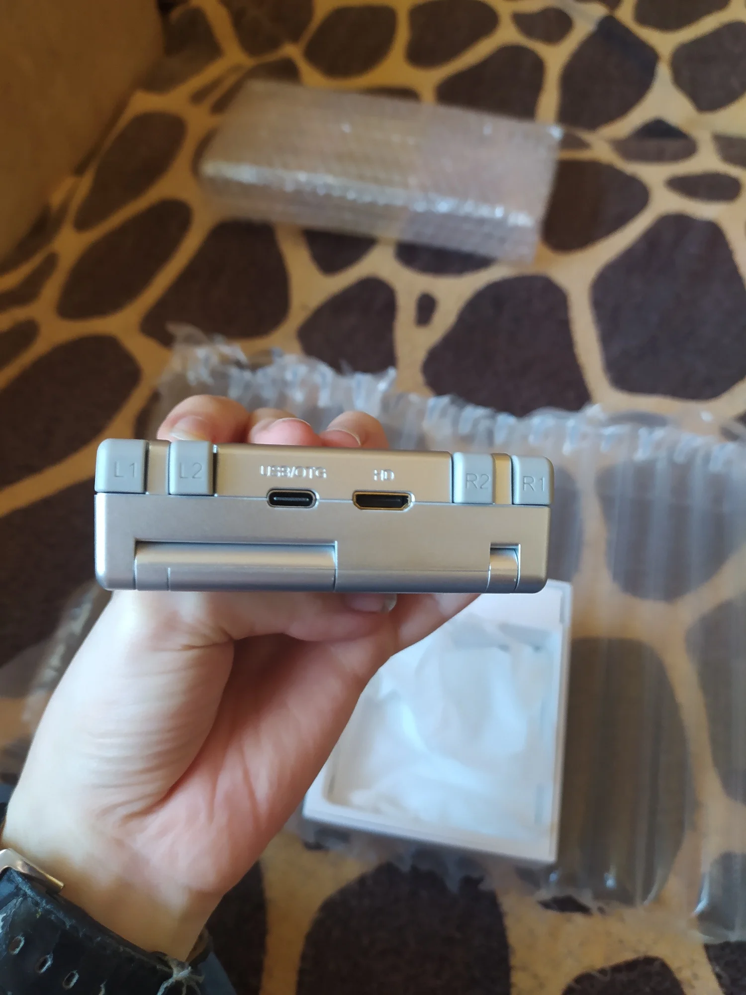 Пришла вовремя. Брал по скидке за 45 долларов примерно, даже сейчас 11.11 нет таких цен на Али. Плюсы этой консоли знают все, формфактор, встроенные wi-fi и bluetooth, достаточная производительность чтоб тянуть даже некоторые игры psp, кастомные прошивки и прочие радости. Теперь по минусам, которые отметил у своего экземпляра. Петля при открытии скрипит. Если смотреть на экран сбоку, то между самим экраном и рамкой есть щели, которые увеличиваются если слегка его скручивать, думаю скрип не из самой петли, а как раз оттуда. У меня серебристый вариант, окрашивание в местах углублений под винты небрежное, видно белый пластик, не критично но могли бы красить и лучше. Не заряжается кабелем type C на type C. Не подключаются все Bluetooth геймпады. У меня заработал только геймпад от Xbox One S, и то не все кнопки, нет start и select, не определяются и назначить нельзя. В целом, консоль мне нравится. Хотя она все же несколько толстовата для карманного варианта. В сумку закинуть пойдет, но в карман я бы брал что то более плоское. Возможно miyoo a30 или rg28xx, но там экран мелкий.N B. 12 ноября 2024