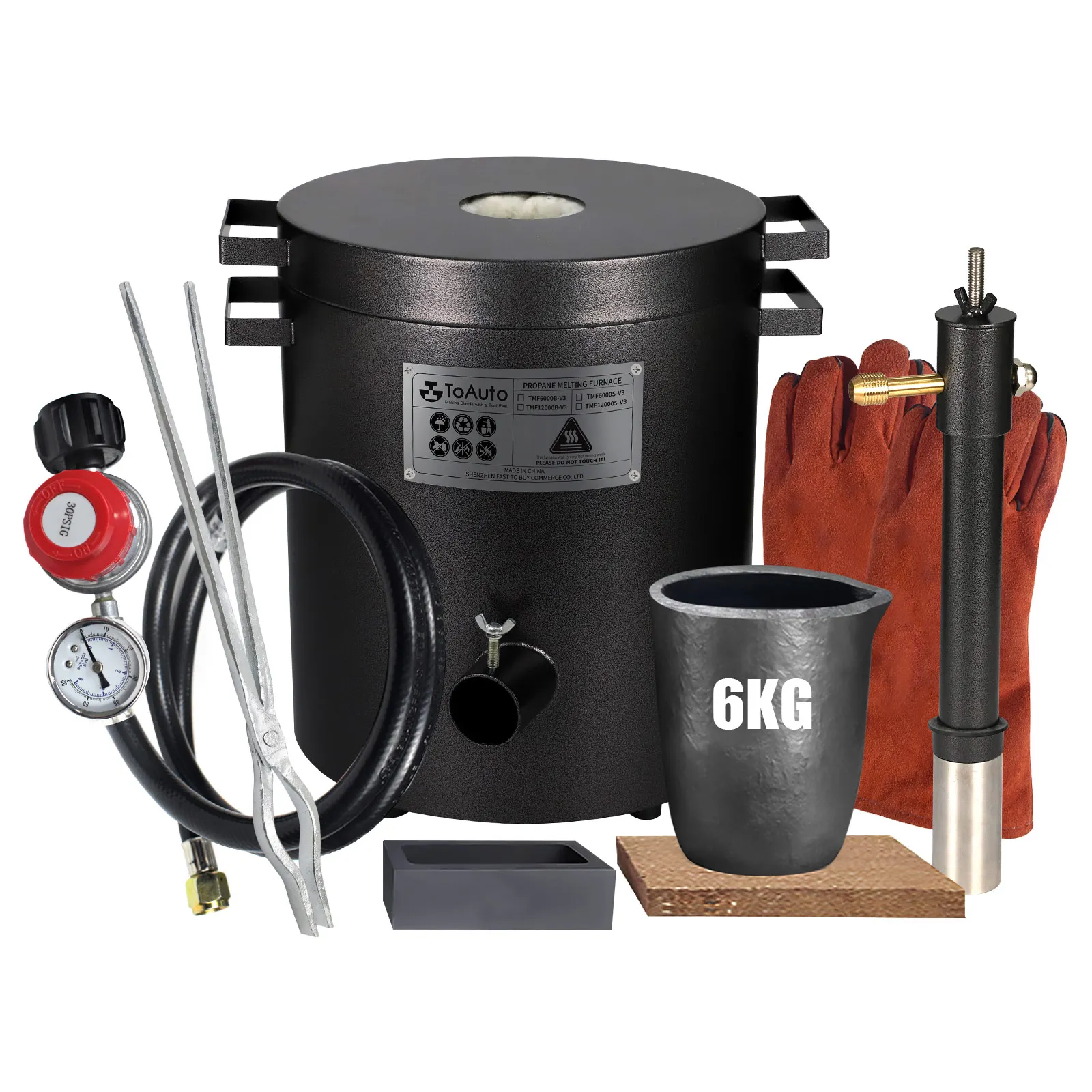 Набор для плавильной печи, тигельные щипцы с пропаном, графитом, 1300 °C, литье, переработка, плавильный завод, драгоценные металлы, золото, серебро, олово, алюминий