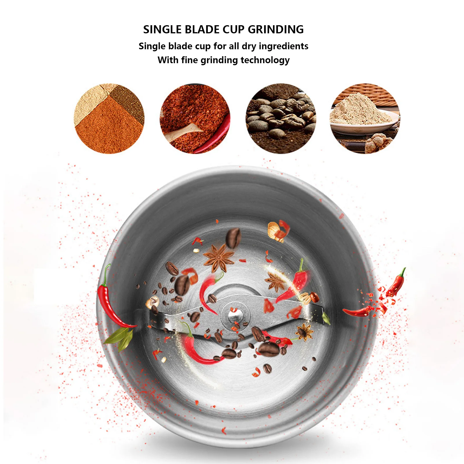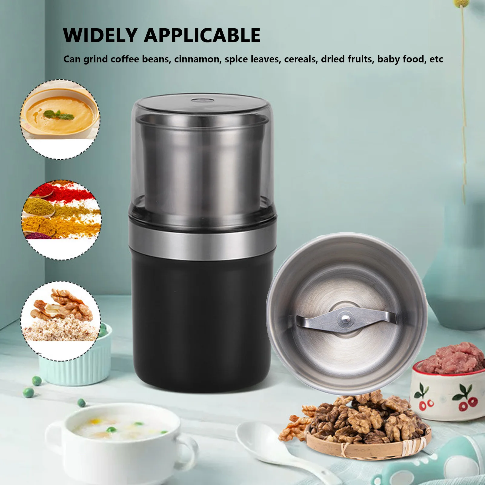 Маленькая электрическая кофемолка, портативная многофункциональная чашка с одним лезвием, емкость 100 г, электрическая кофемолка для орехов и круп