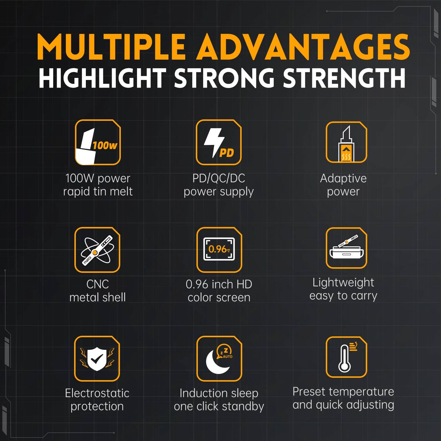 Электрический паяльник с регулируемой температурой, 100 Вт, HS-01 Обновленная версия FNIRSI HS-02 + паяльные жала, комплектация в ассортименте