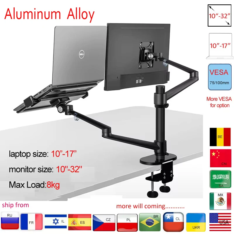 Эргономичная Алюминиевая Подставка для ноутбука 10-17 дюймов, многофункциональный настольный держатель для монитора 32 дюйма, с полным движением, с перекладиной