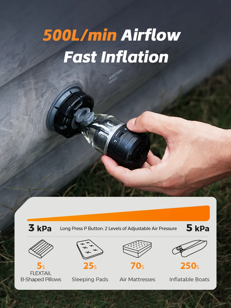 FLEXTAILGEAR MAX PUMP 3–5 кПа Электрический воздушный насос высокого давления с прозрачной световой конструкцией и аккумулятором 650 мАч