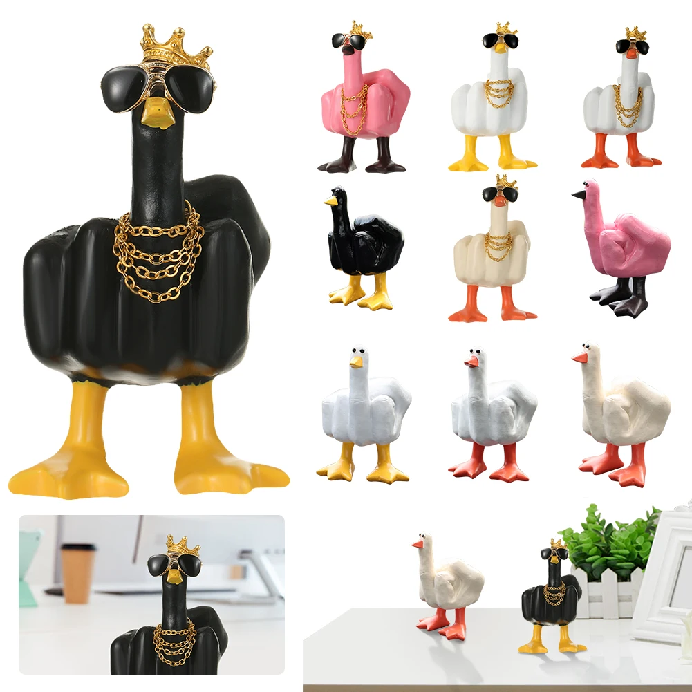 Маленькая скульптура утки среднего пальца, декоративная статуэтка утки из смолы, 7,5 см, настольное украшение для дома, сада, стола