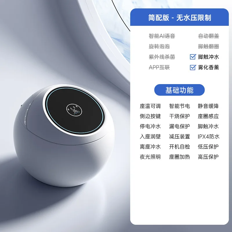 Голосовой автоматический двойной водный путь, умный туалет в форме яйца + электрический мгновенный сифон, пенопластовый экран