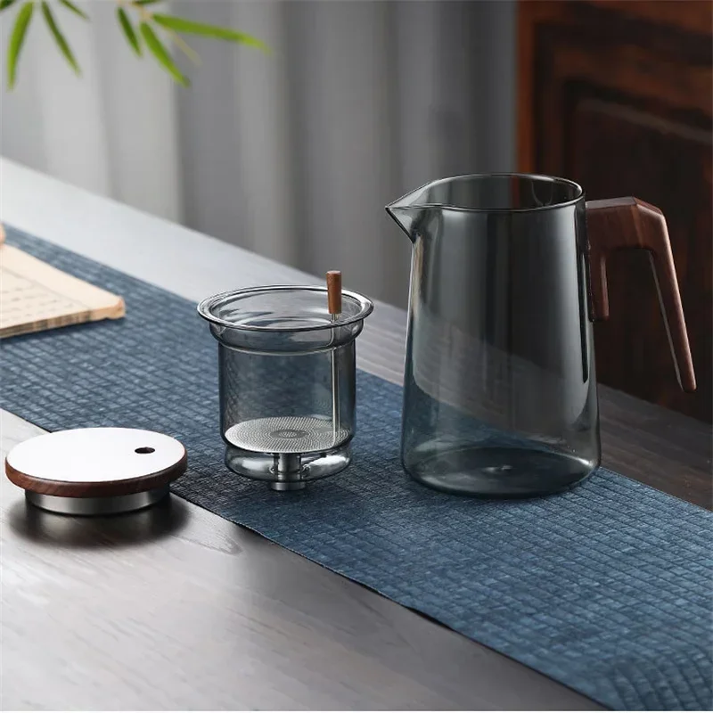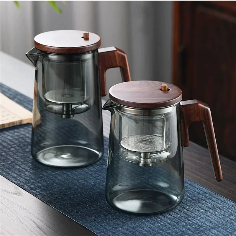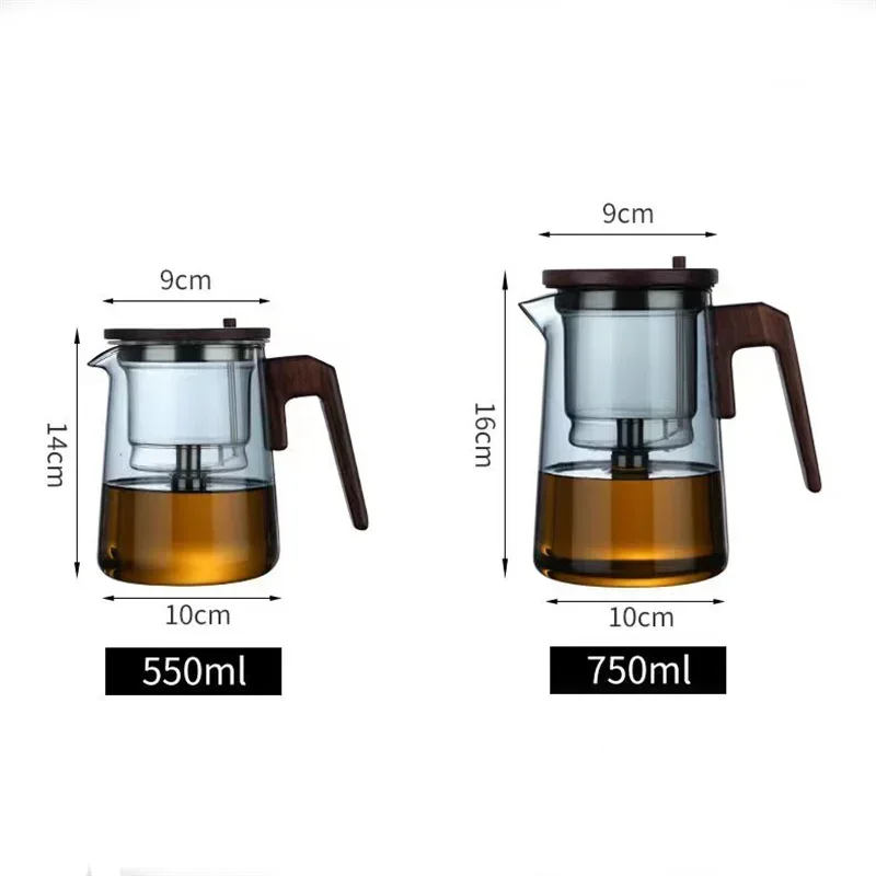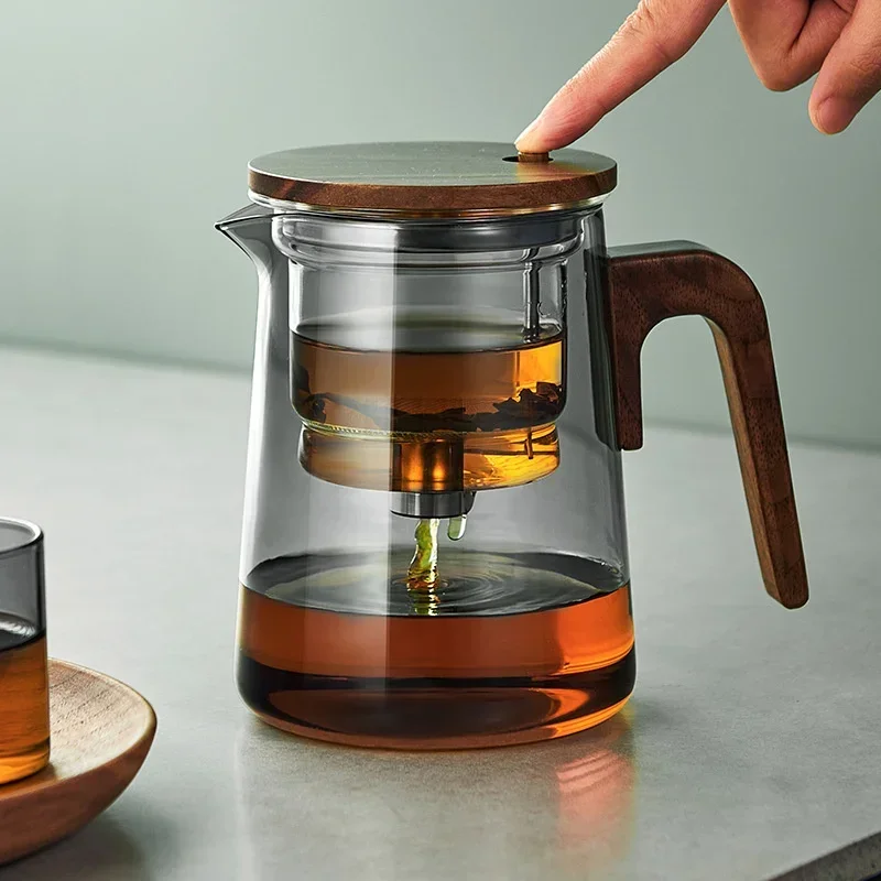 Фильтрация чая одним нажатием, Стеклянные Чайники с деревянной ручкой, разделение воды и чая, внутренний контейнер, чайник с инфузером