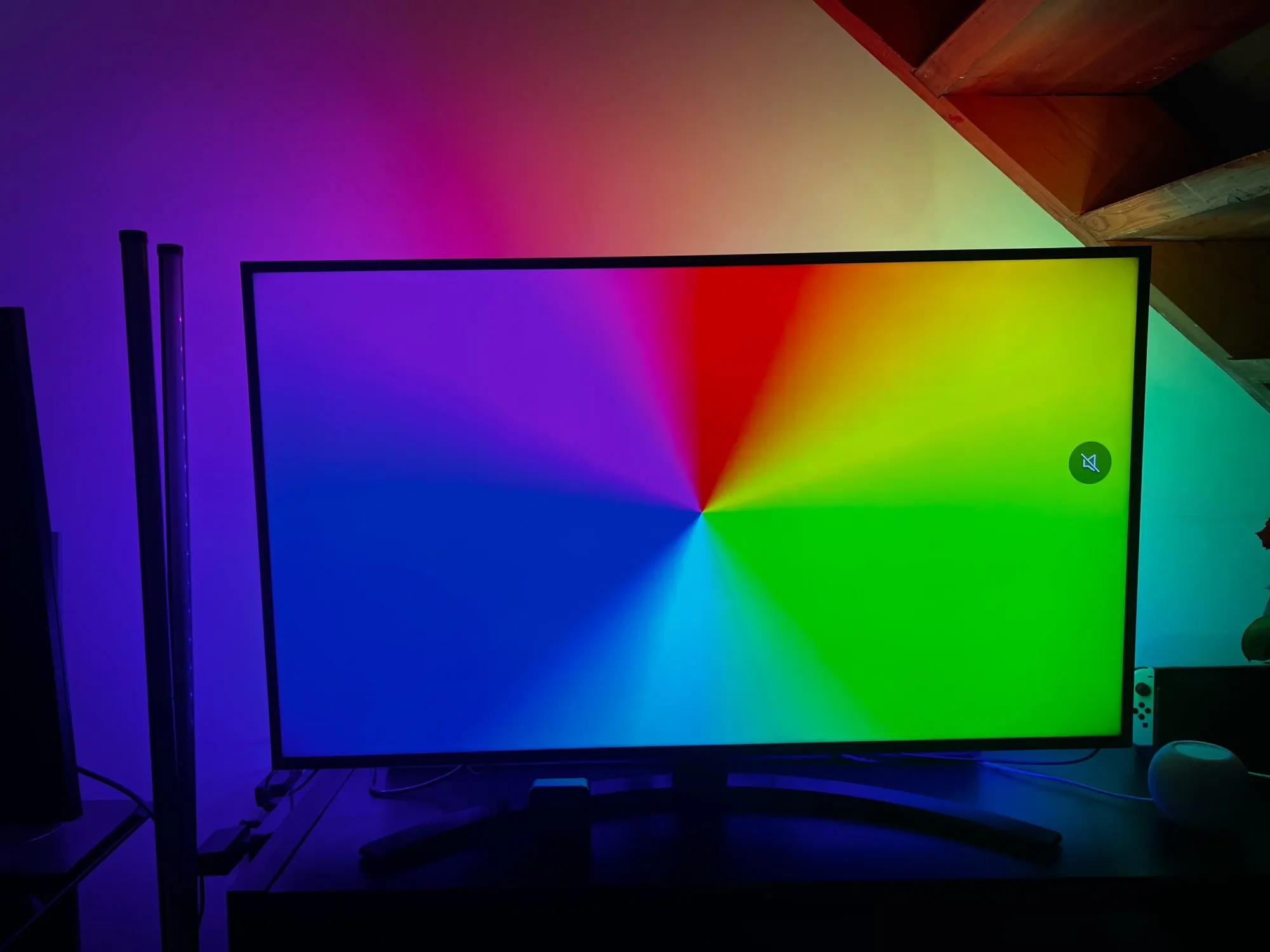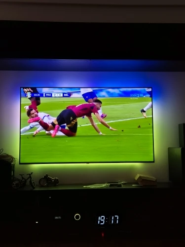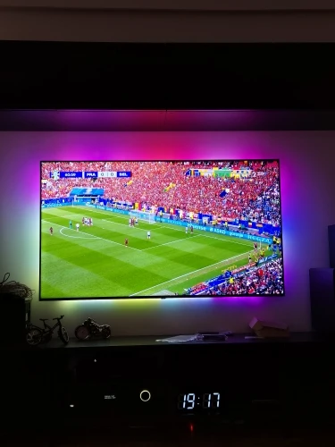 Очень хорошо, последняя полоса очень справедливая, я думаю, что ей не хватает светодиода, потому что она центрирует ее на верхней полосе, и ей не хватает нескольких см, но это ни на что не влияет. Синхронизирует окружающую среду и концы экрана. Будьте внимательны, имейте в виду, что это не для самого телевизора, нужна внешняя составляющая. Подключить его к световой коробке и обработать там изображение. Только сам телевизор, он не может этого сделать. Я решил это, поместив Chromecast, и само собой разумеется, что Nintendo и play station. Ча очень хорошо.