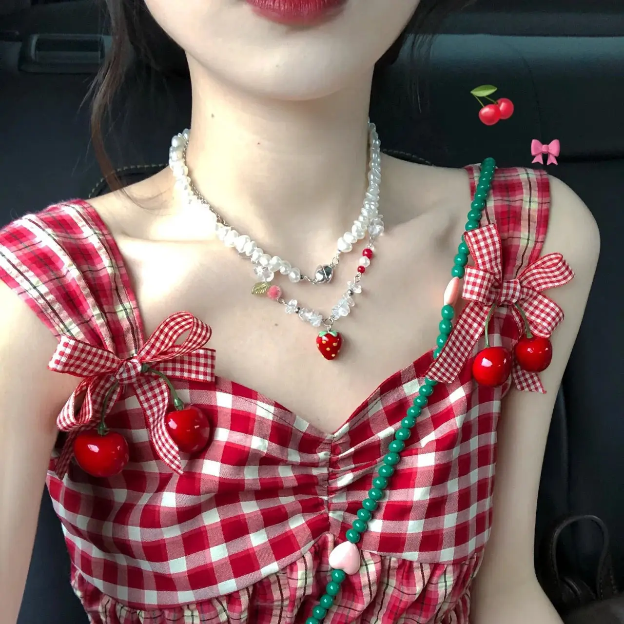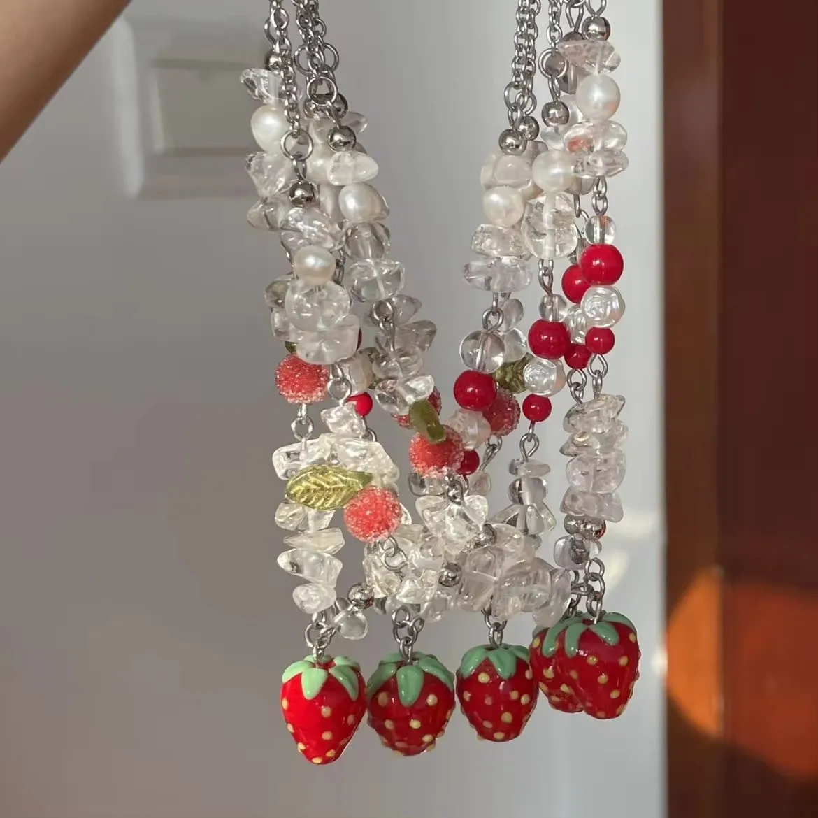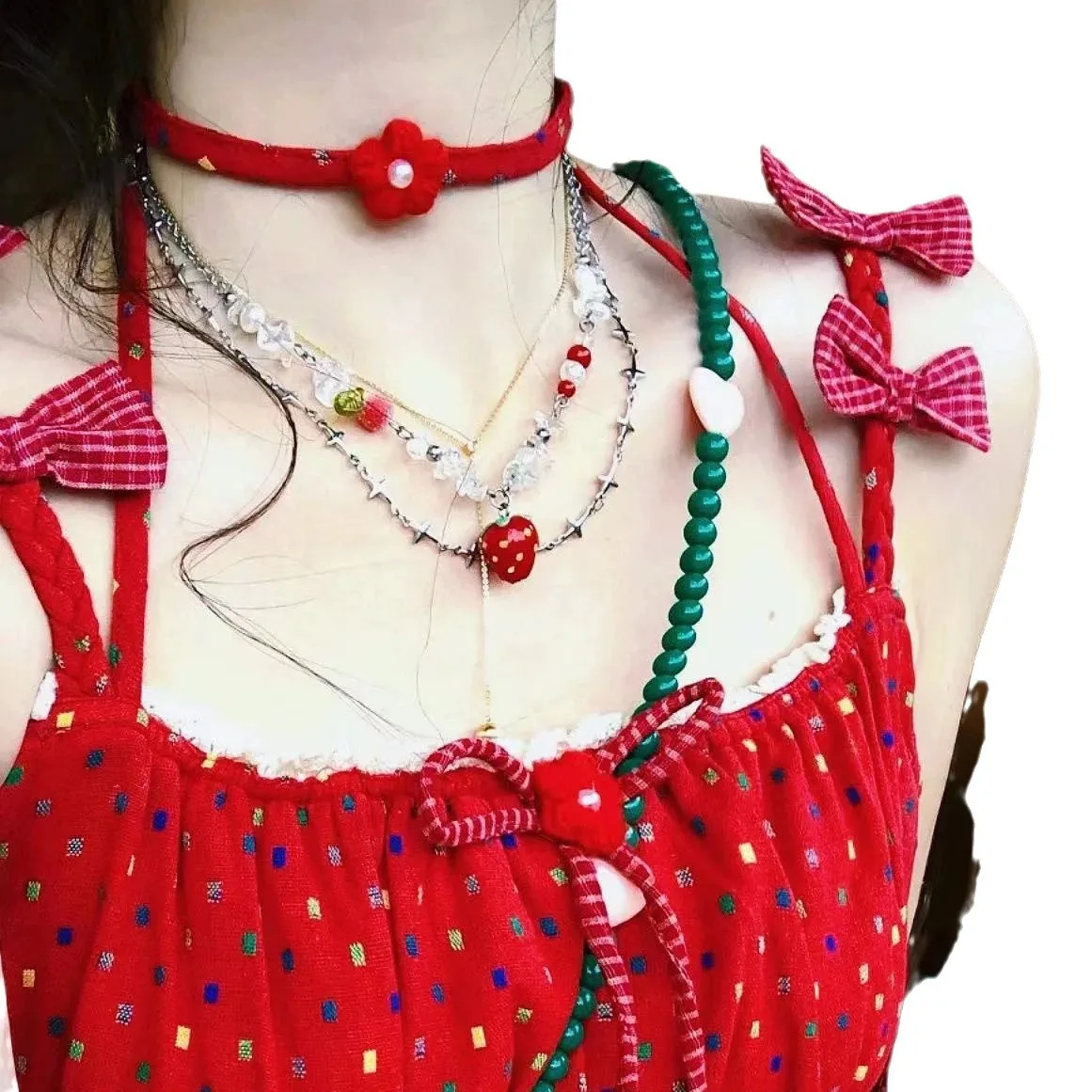 Милое керамическое красное ожерелье Y2K с подвеской в виде клубники ручной работы для женщин и девушек модное эстетическое очаровательное ювелирное изделие аксессуары