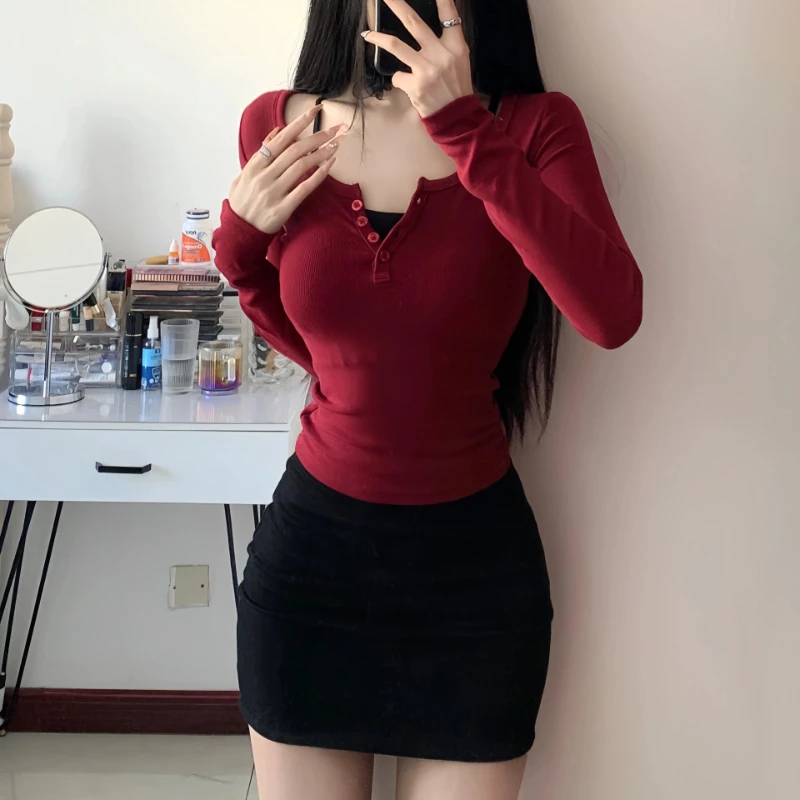 Футболки женские уличные однотонные универсальные тонкие корейские стильные одежды милые сексуальные девушки осенний топ с длинными рукавами модная шикарная футболка