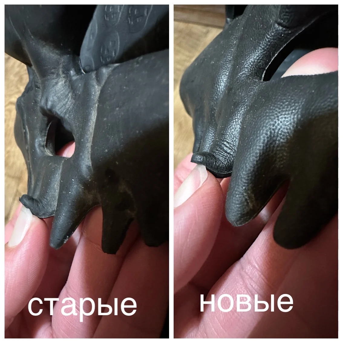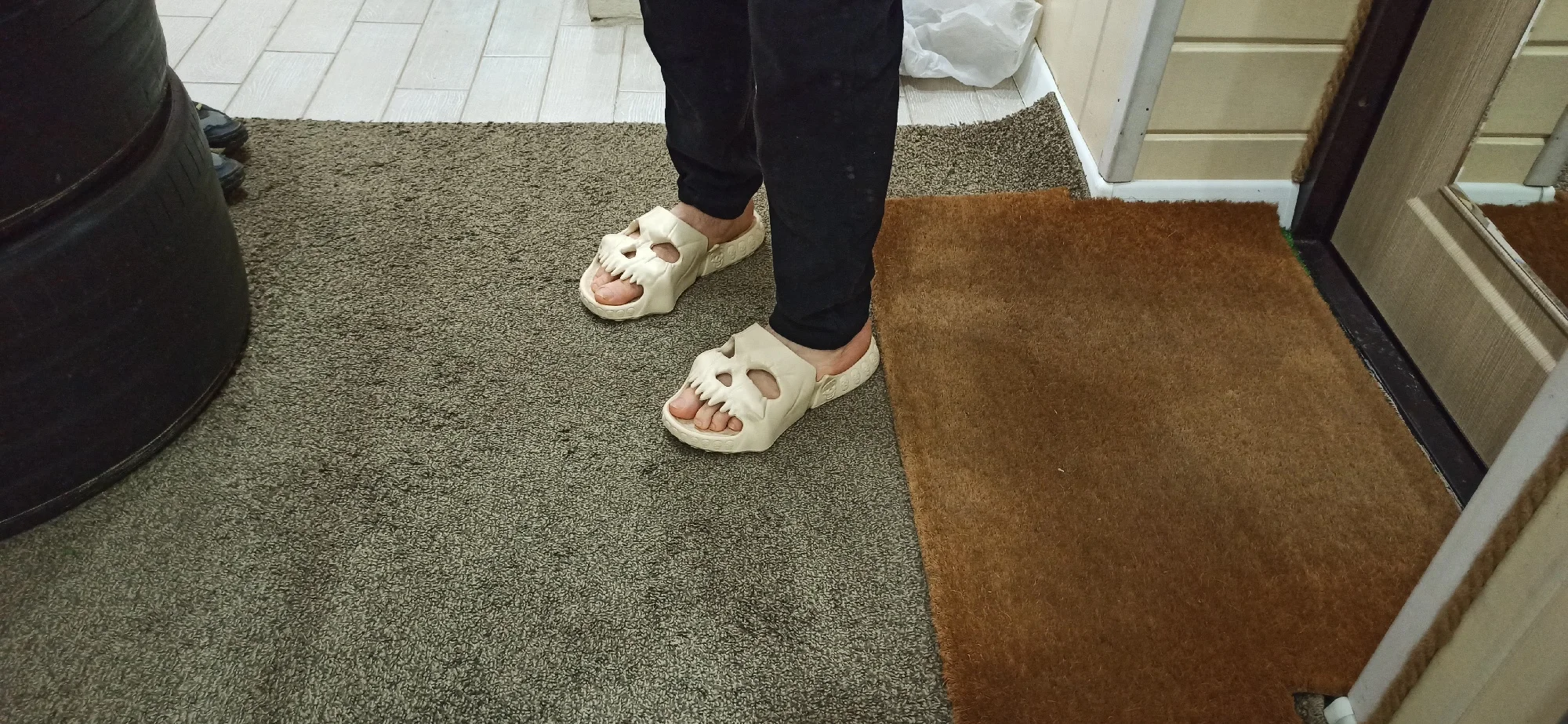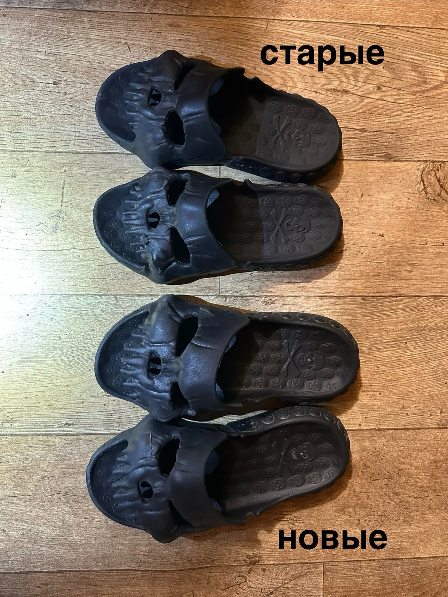 Если бы заказывала эти тапки впервые, думала бы, что всё нормально. Заказывала у другого продавца довольно давно, и очень понравились. До сих пор те тапки целые, но есть один нюанс: после сушки в банной парилке они уменьшились на несколько размеров и стали вместо 45, наверное, 41-42 размера. Заказали новые вдвое дороже, чем раньше. Во-первых, они сделаны из другого материала - более пористого и легкого и менее живучего, менее мягкого и не такого приятного к ноге. Материал выглядит дешево и ненадежно, заломы на нем быстро образуются и сильно видны. Такие второй раз бы не купили, обычная дешёвка. На фото для сравнения те и другие. Во-вторых, они просто маленькие! Первые тапки были тоже 46-47 размер и были идеально для 45 размера, а новые тапки меньше, подходят на 43-44 размер. Ходить можно, но неудобно. Возможно, продавец указал правильные размеры в сантиметрах, не перепроверяли, но обычно китайская обувь 44-47 размера на 45 подходила и уже заказывали такие же тапки! То ли это подделка, то ли стали хуже делать. Одно разочарование.