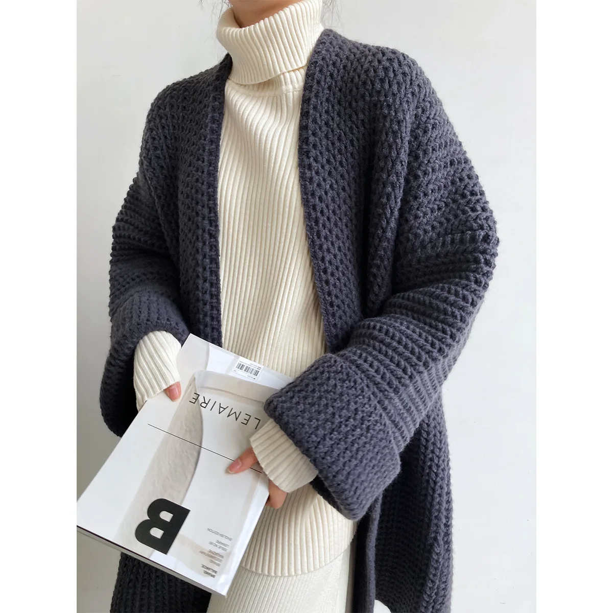 Женский вязаный кардиган макси