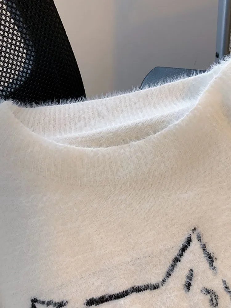 Женский винтажный жаккардовый пуловер в стиле Харадзюку