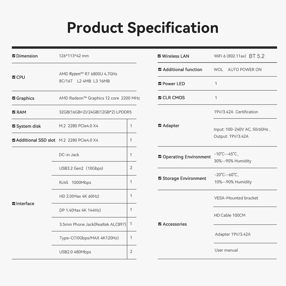 - SER5 Max:Ryzen7 6800U/6800H DDR5