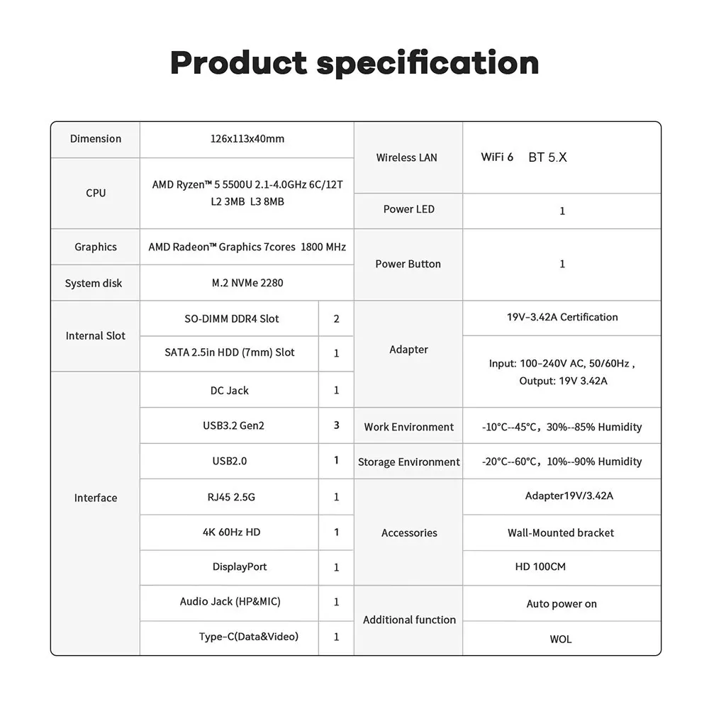 - SER5 Pro:Ryzen5 5500U DDR4
