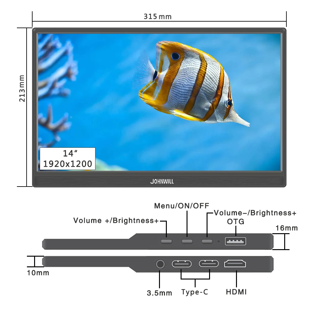 Портативный сенсорный экран 14"/16" FHD 1920x1200 16:10 IPS