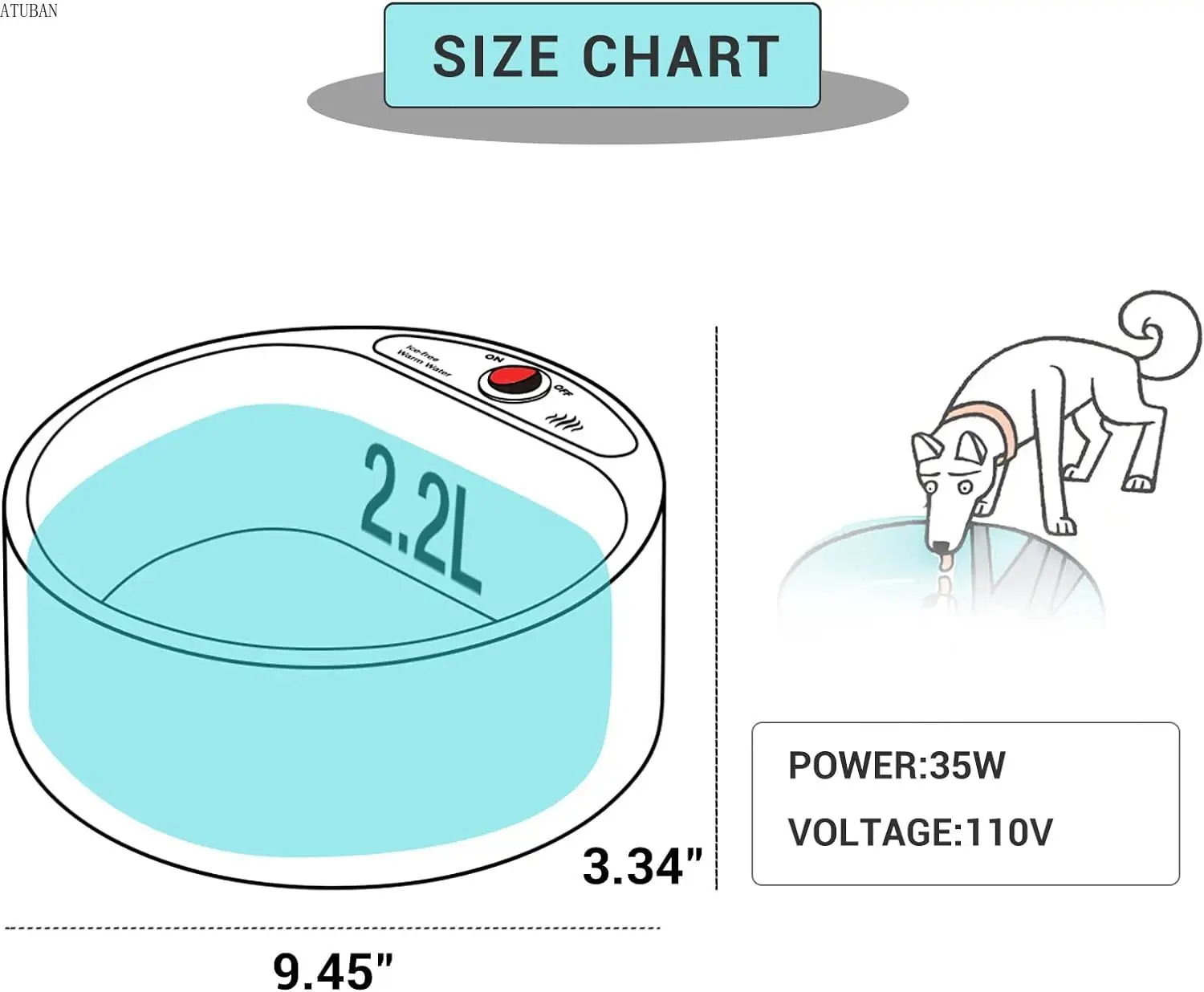 Тарелка для воды ATUBAN с подогревом для собак
