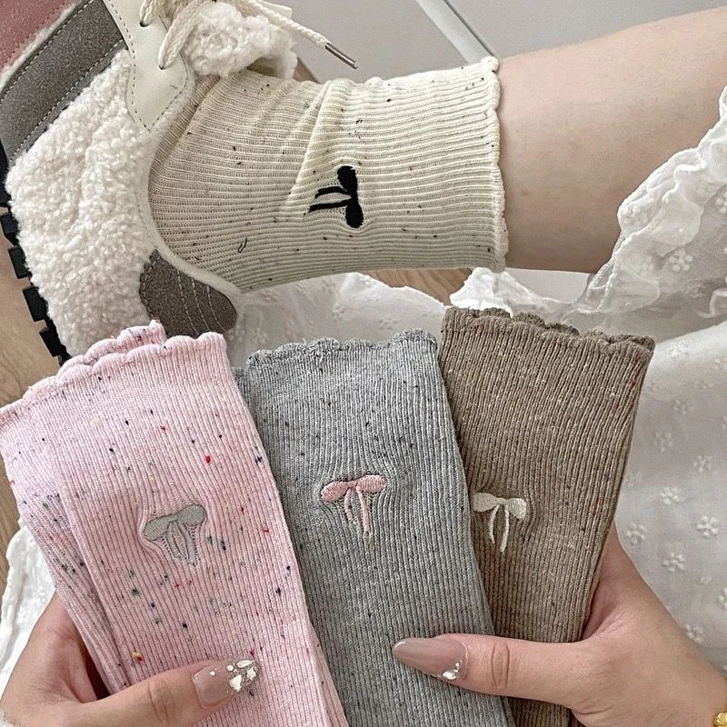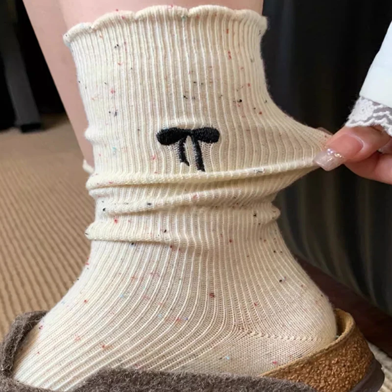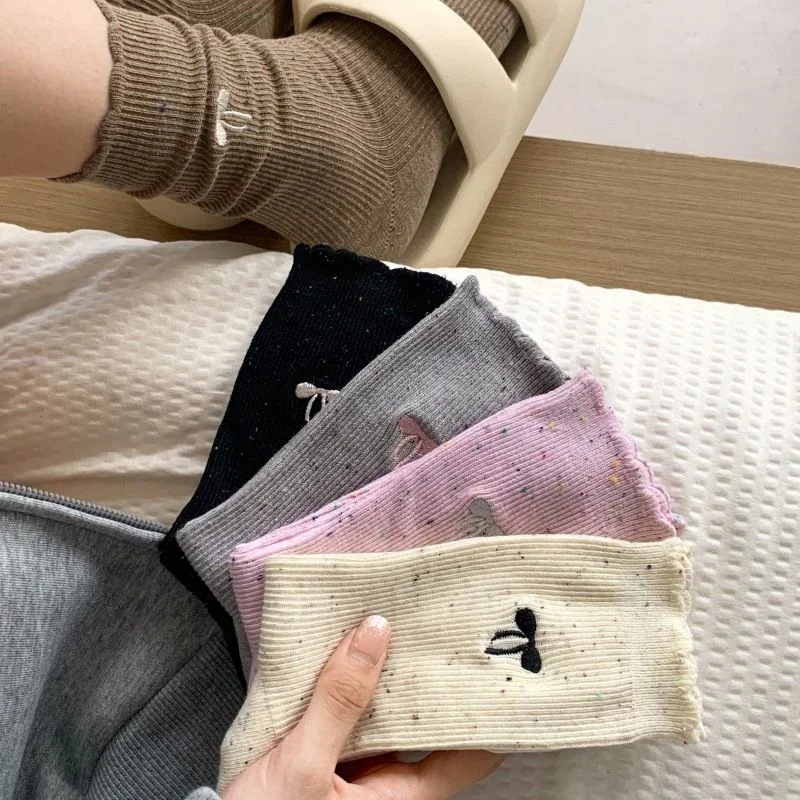 Милые вязаные розовые носки Lolita с бантом женские летние ажурные носки для девочек повседневные круглые свободные носки чулки средней длины уличная одежда
