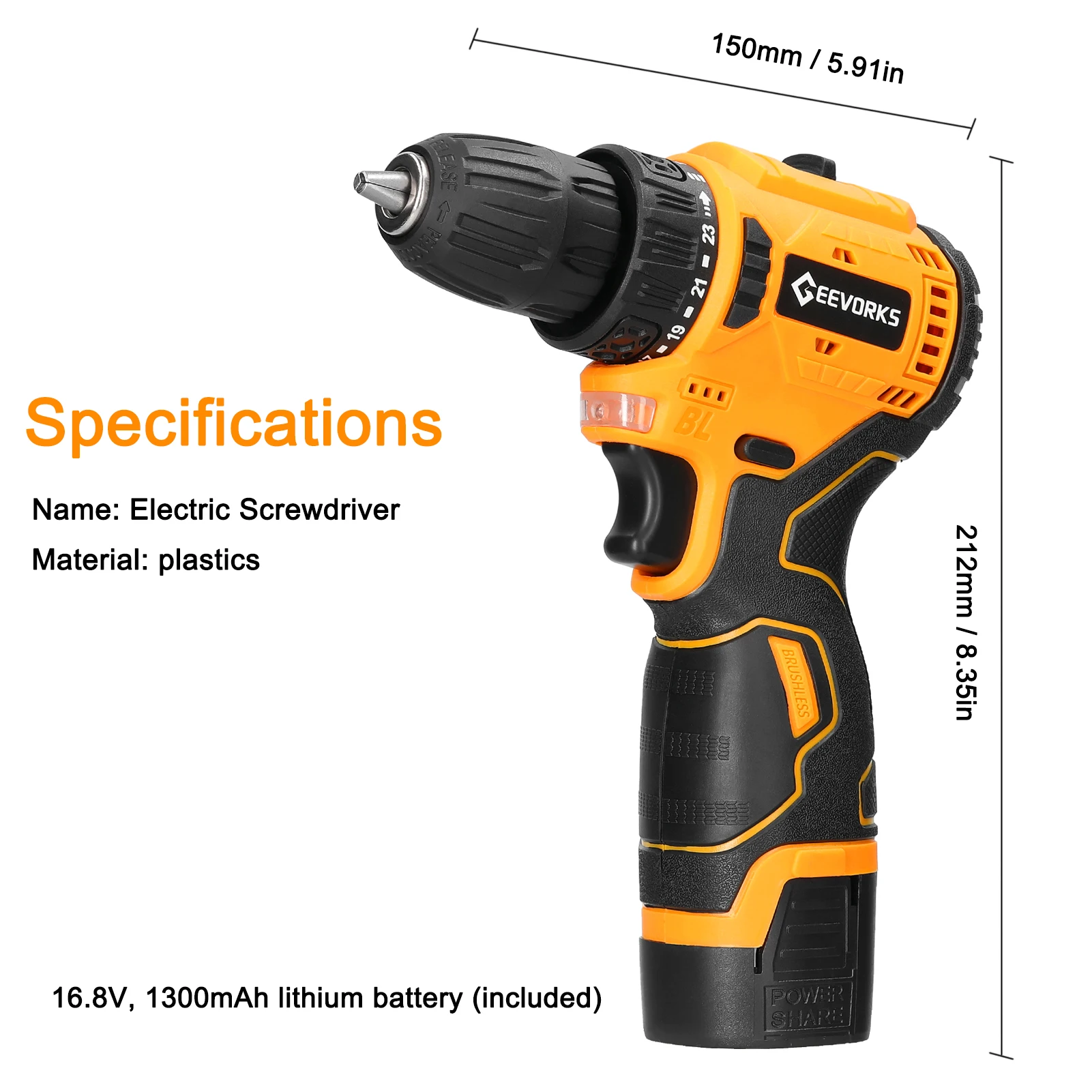 Шуруповерт ударный бесщеточный с литиевым аккумулятором,16,8в,55 нм,1300 мАч