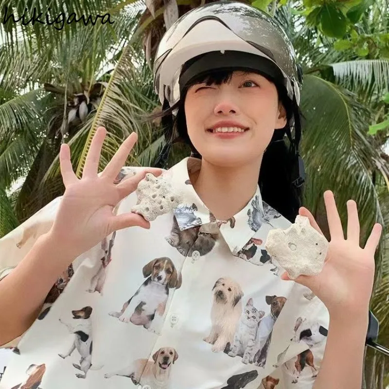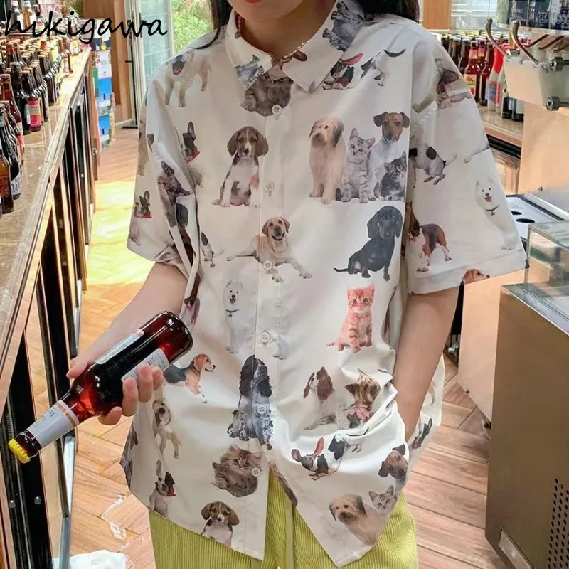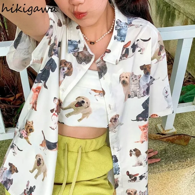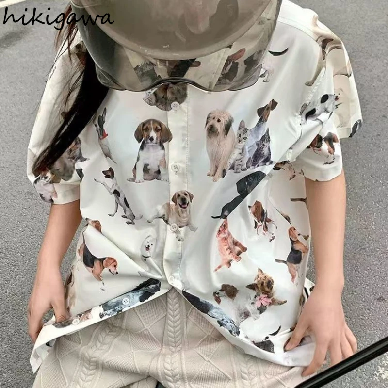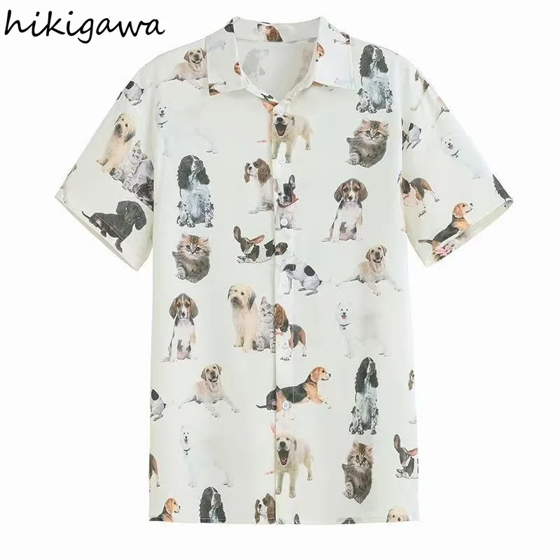 Женская летняя блузка с коротким рукавом и принтом собаки