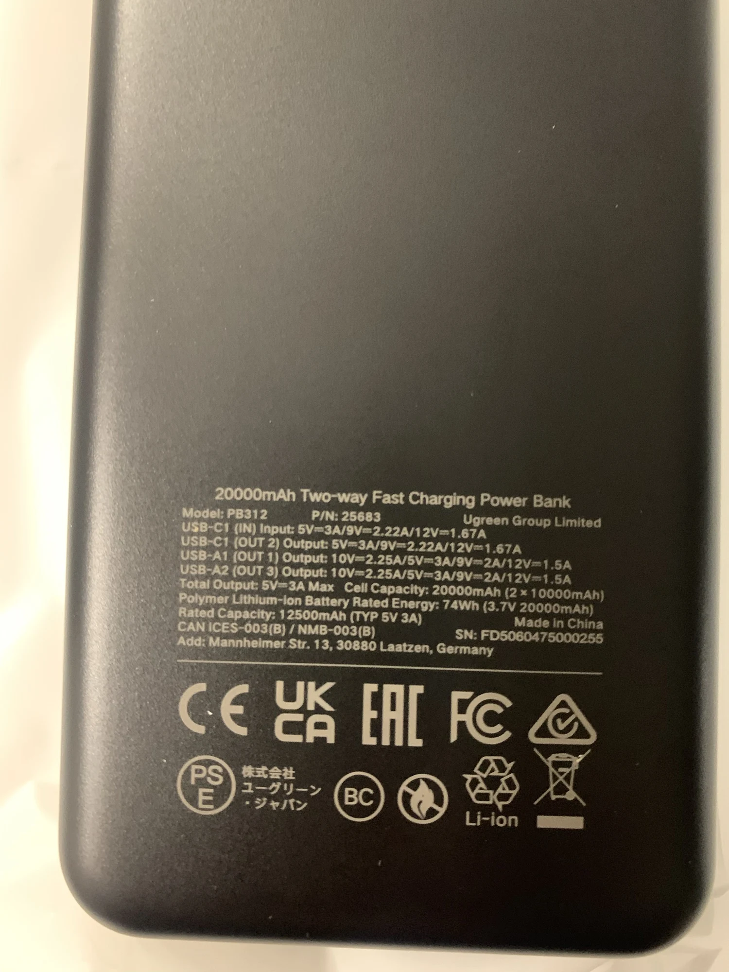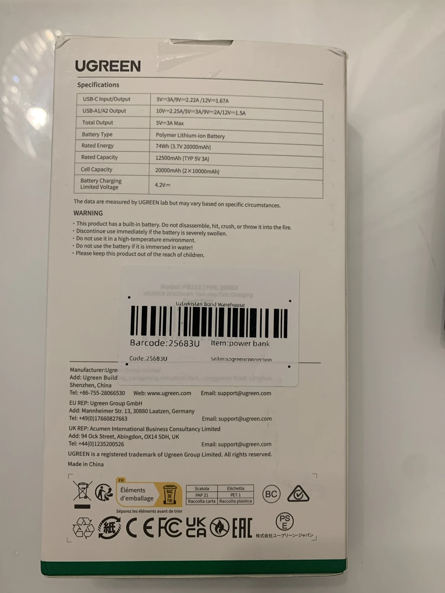 Power Bank 20Вт Ugreen полностью соответствует характеристикам на сайте.Сделан отлично.Приятно держать в руках. Пришел заряженный 47%. К моему смартфону Samsung подходит идеально, заряжает быстро.Mixa M. 1 февраля 2025