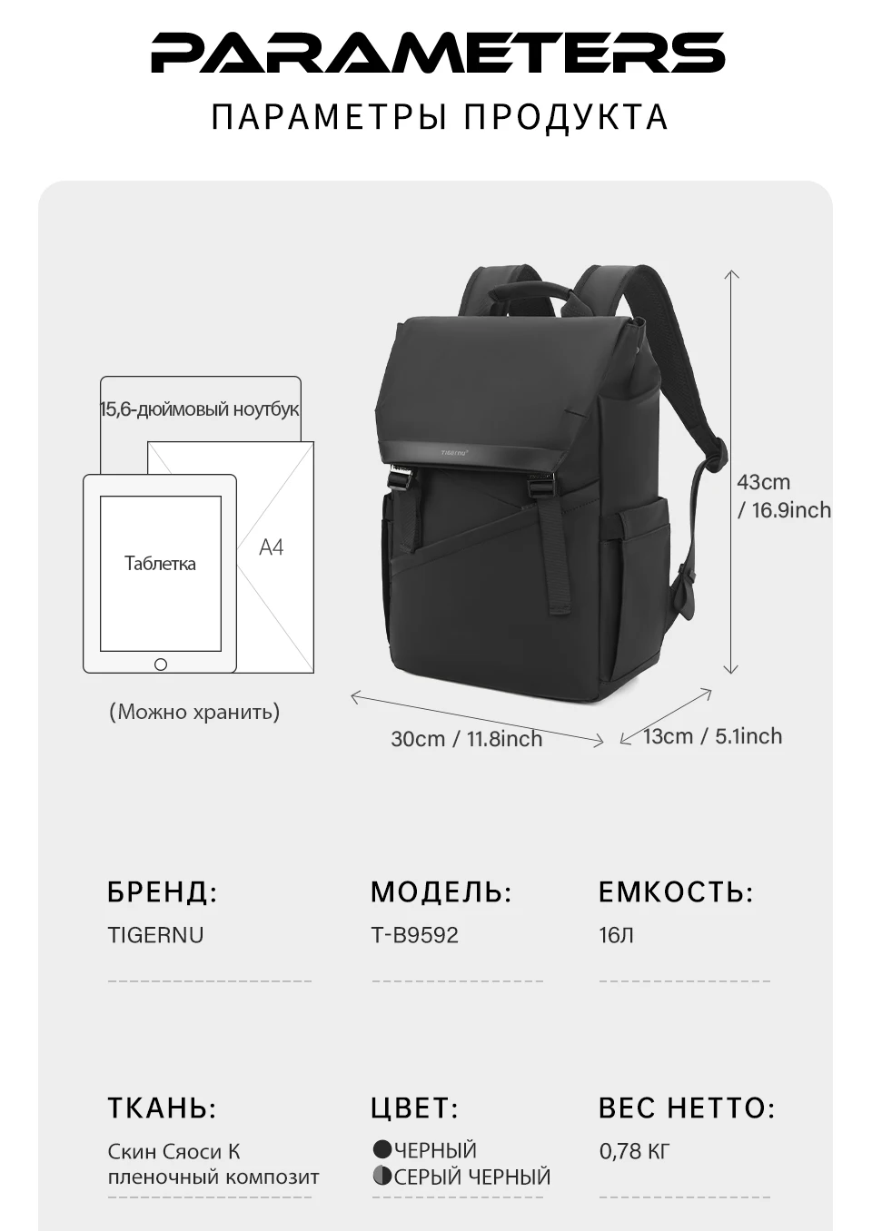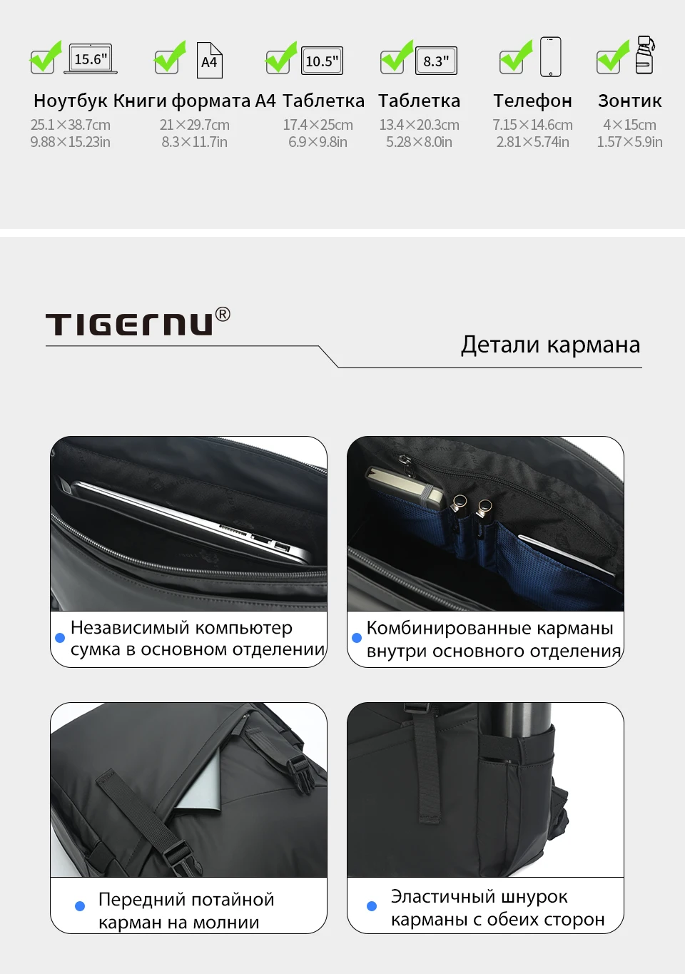 Это шикарный рюкзак от Tigernu - отделение для ноута, внутри есть отделения и доп. карман на молнии, по бокам удобные карманы с резинками для бутылок и карман с молнией! Предыдущий рюкзак от Tigernu до сих пор в прекрасном состоянии! Tigernu спасибо за отличный рюкзак! Всем рекомендую продукцию данного бренда, обязательно берите и не пожалеете ????Viktor B. 29 августа 2024