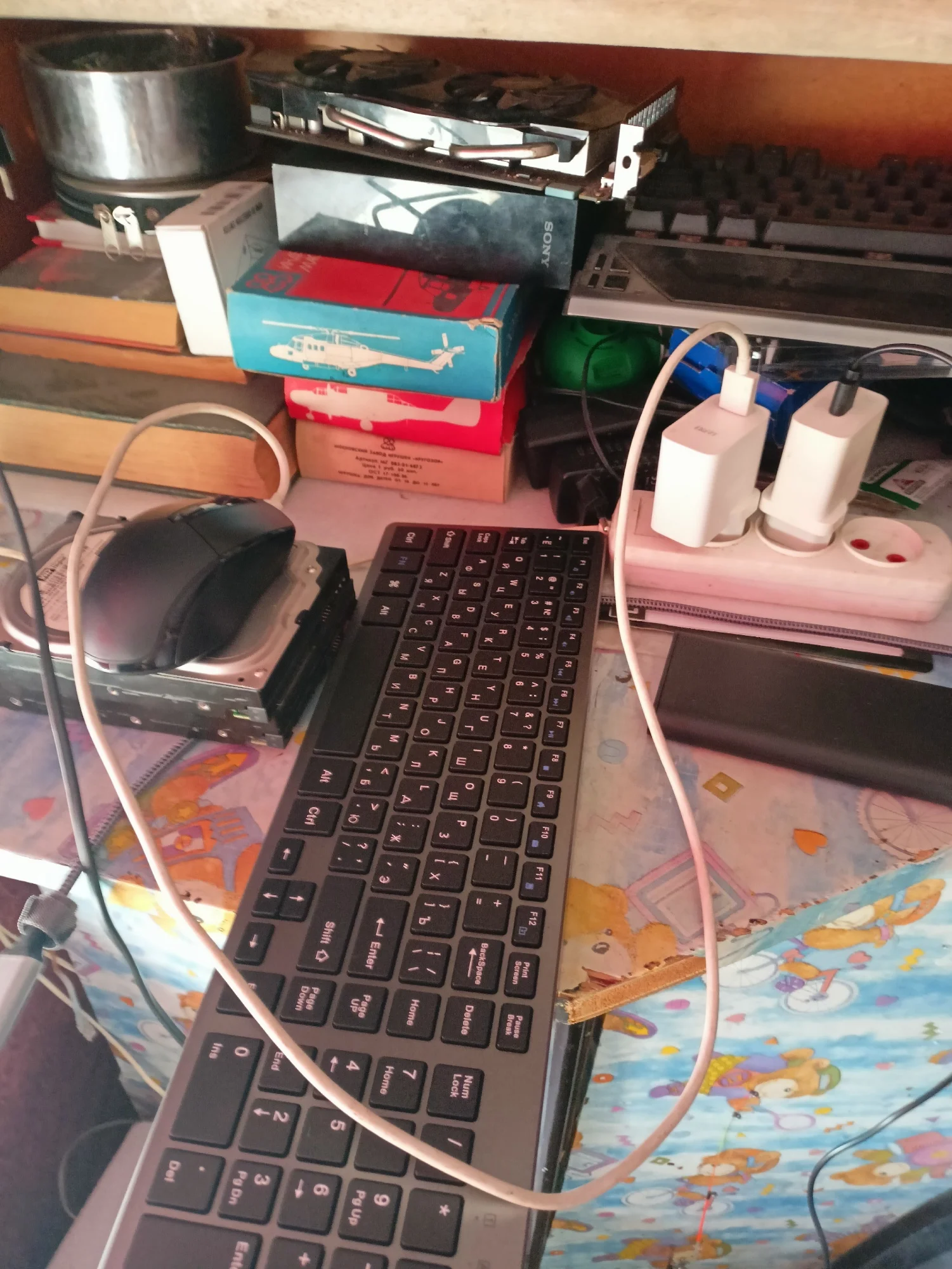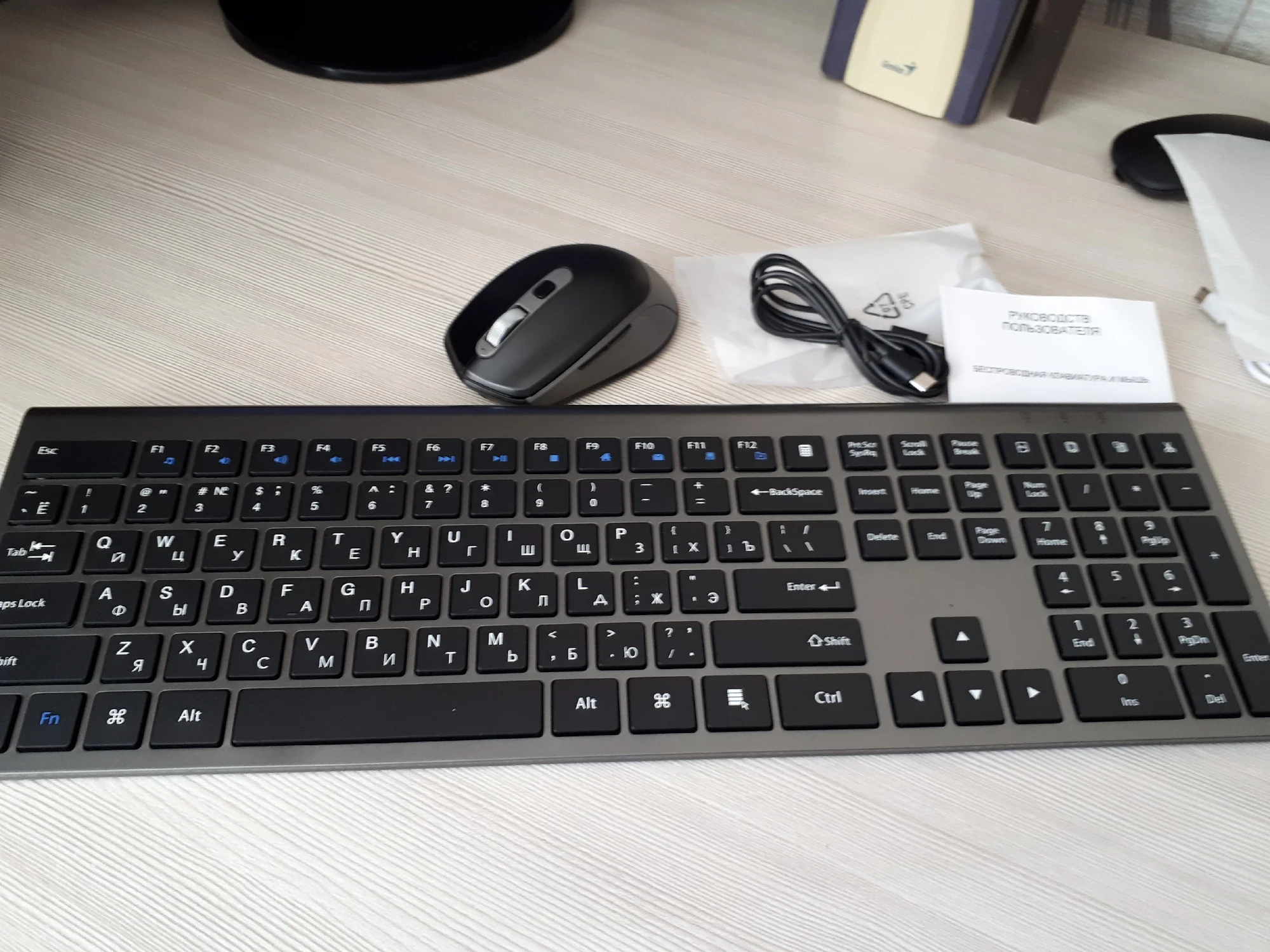 Комплект из перезаряжаемых клавиатуры и мыши (удобно, не нужно тратиться на батарейки)