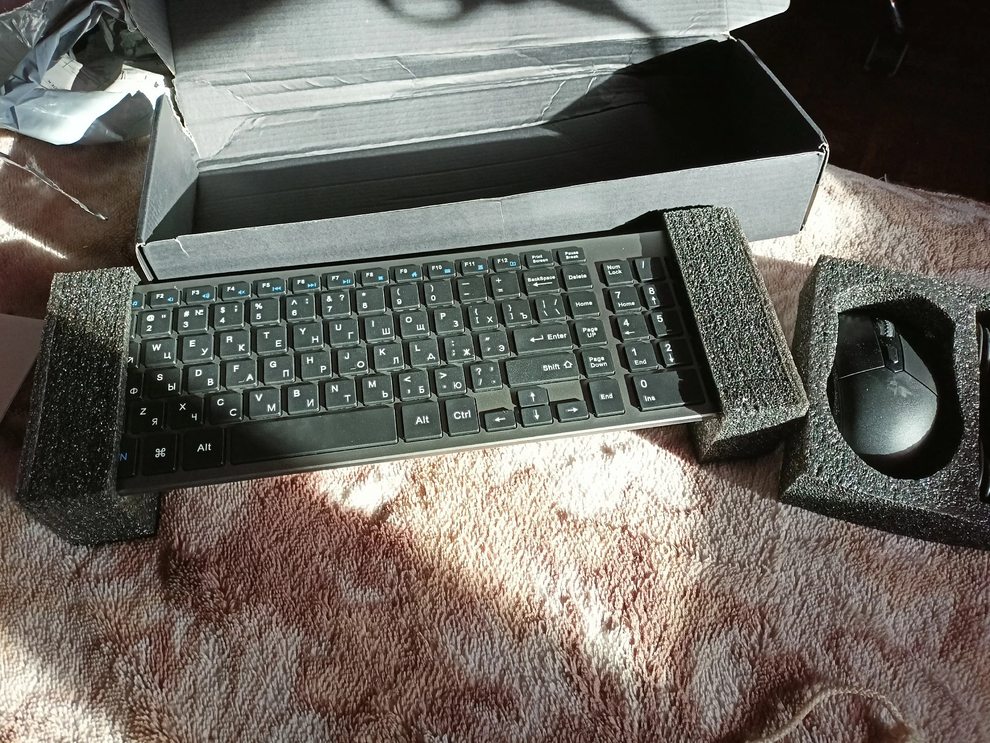 Упаковано просто в коробку без всяких полиэтиленовых пакетов, с нашей почтой не работали что ли? С нашей почтой надо в воздушный матрас упаковывать! Слава яйцам что всё целое осталось! мышь потерлась об клавиатуру. прилагаю фото как все получил. Сама мышь и клава хорошие, кнопки мыши прям бесшумные клава чуть по шумней, там используются ножнечный механизм кнопок, как на ноутбучных клавиатурах. По сравнению с механикой на порядок тише.4720 u. 19 февраля 2024
