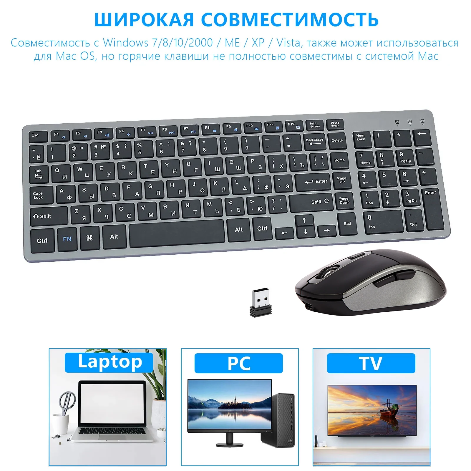 Широкая совместимость-Эта клавиатура совместима с Windows 2000, XP, Vista, Win 7, Win 8 и Win 10. Ее также можно использовать в Mac OS, но некоторые мультимедийные функциональные клавиши использовать нельзя.