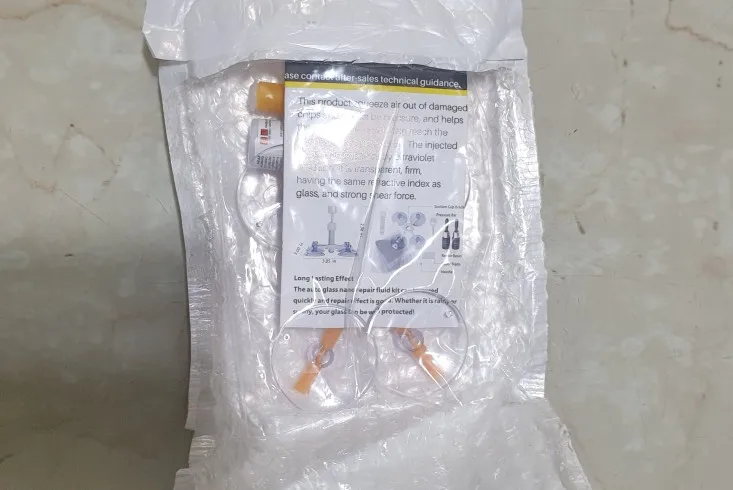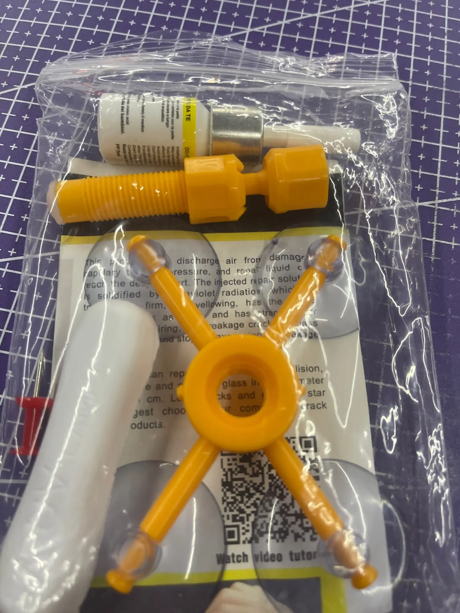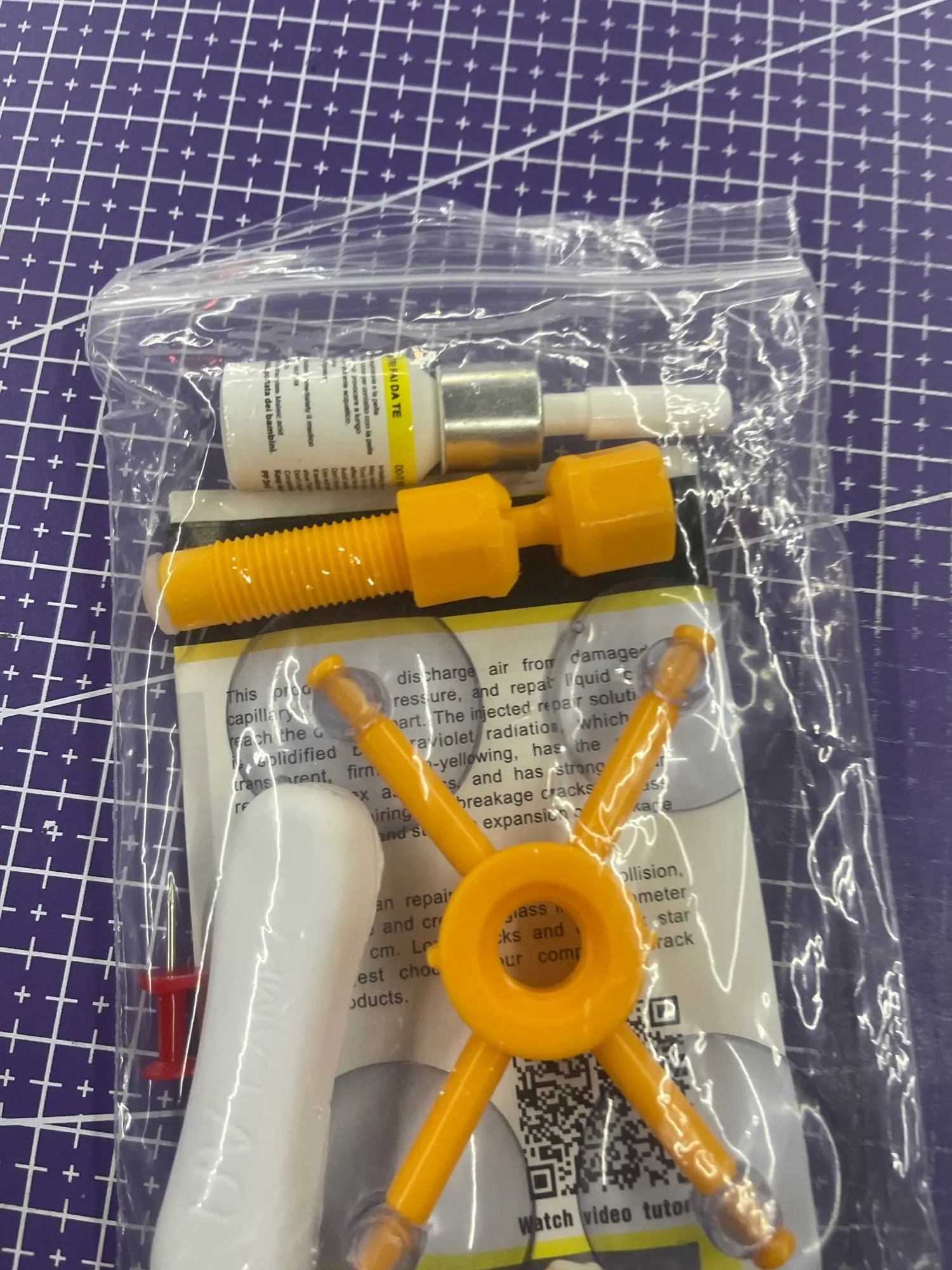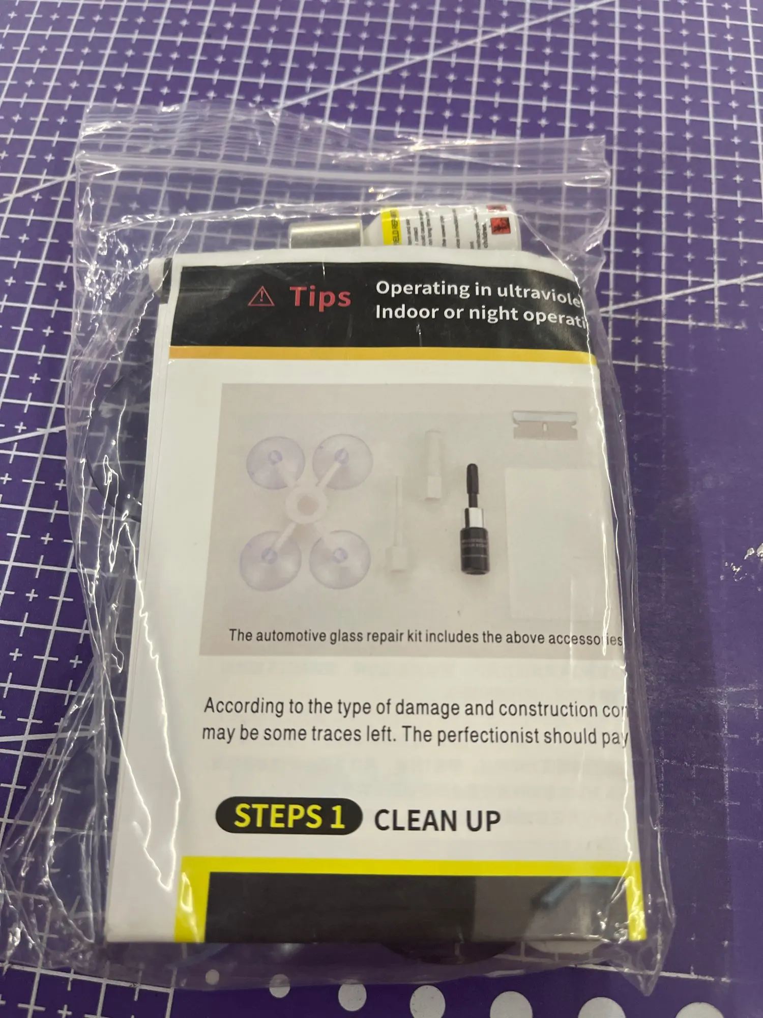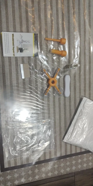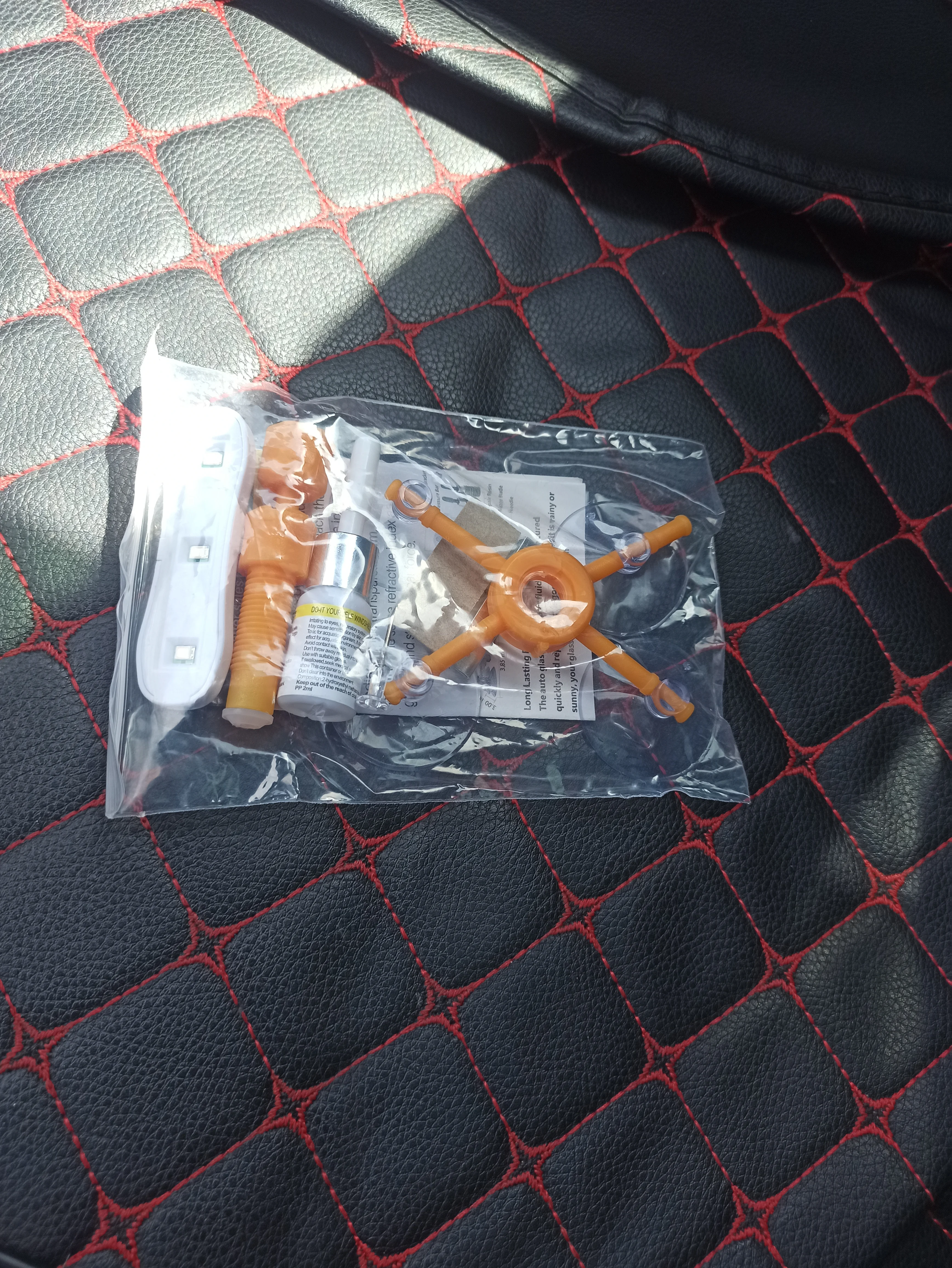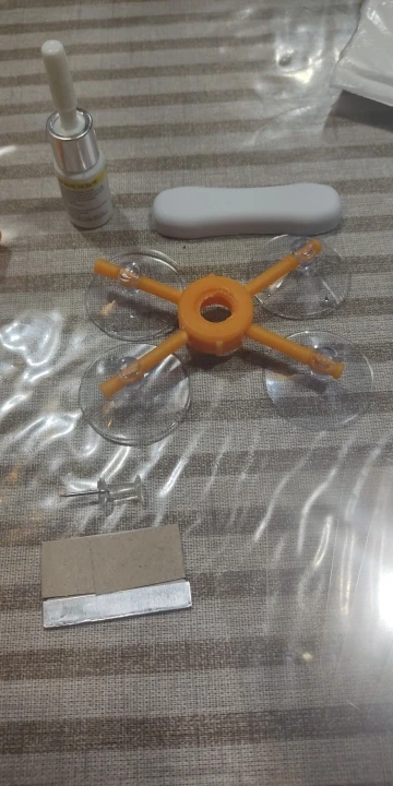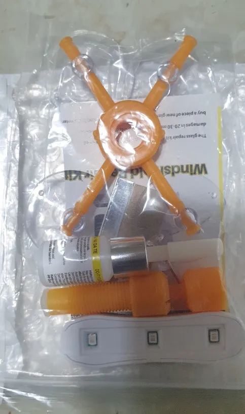 Комплект для ремонта сколов на лобовом стекле (присоски, полимер, шпатель, УФ-фонарик, тряпка)